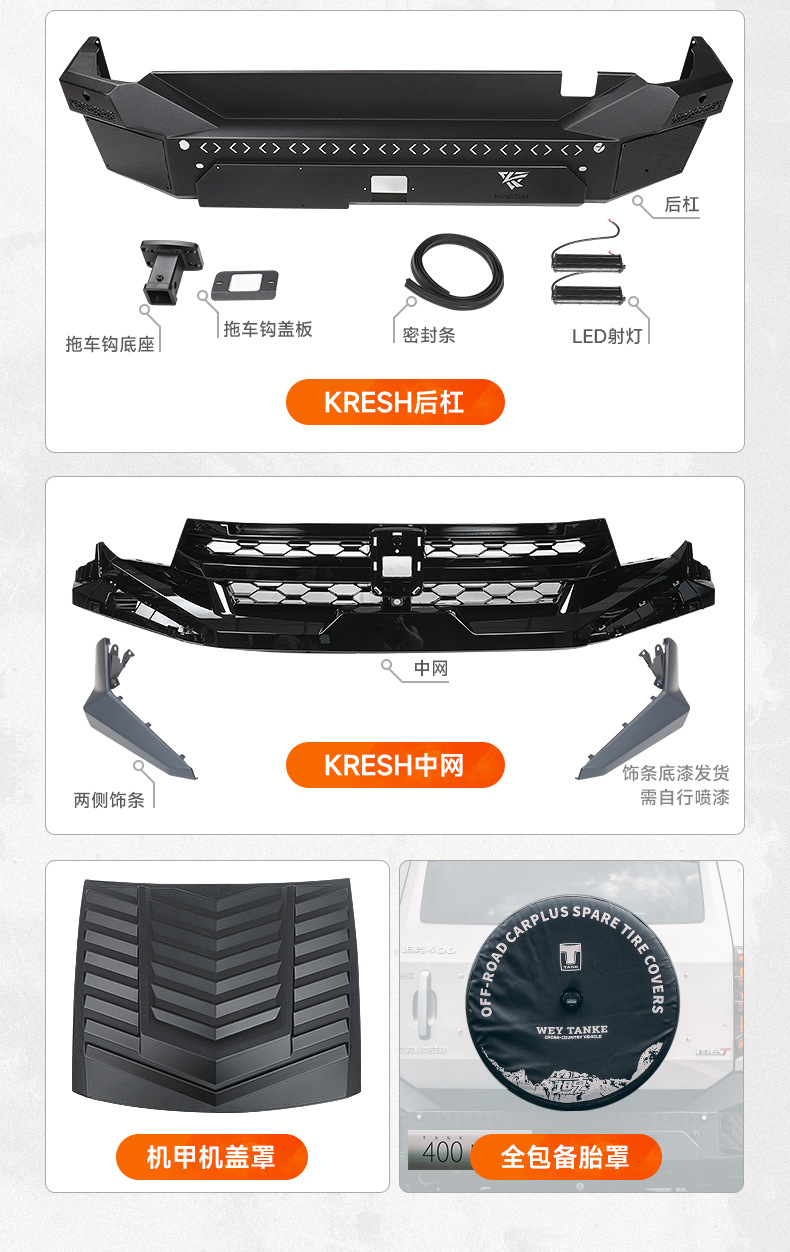 Tags: car exterior accessories, front grille assembly, off-road body kit, rear bumper wing, trunk spoiler wing, vehicle modification set