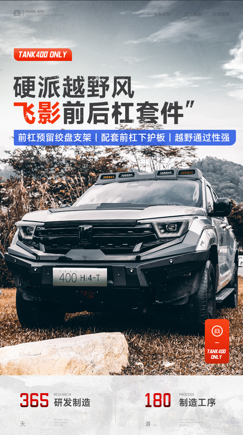 Upgrade your Tank 400 Hi4-T with this premium full body kit. Features front grille, bumpers, and spoiler for a bolder, more aggressive off-road appearance.