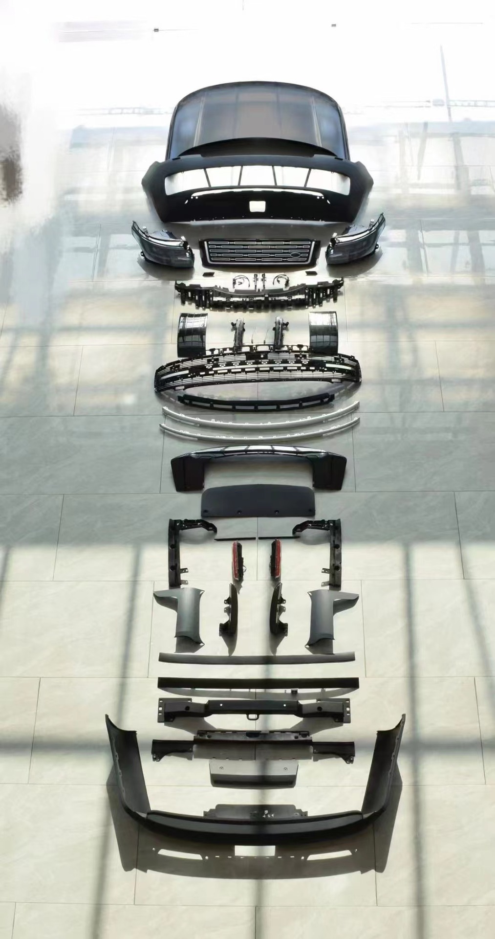 Tags: automotive body parts, bumper conversion, car exterior upgrade, front bumper assembly, Range Rover body kit, Vogue facelift kit
