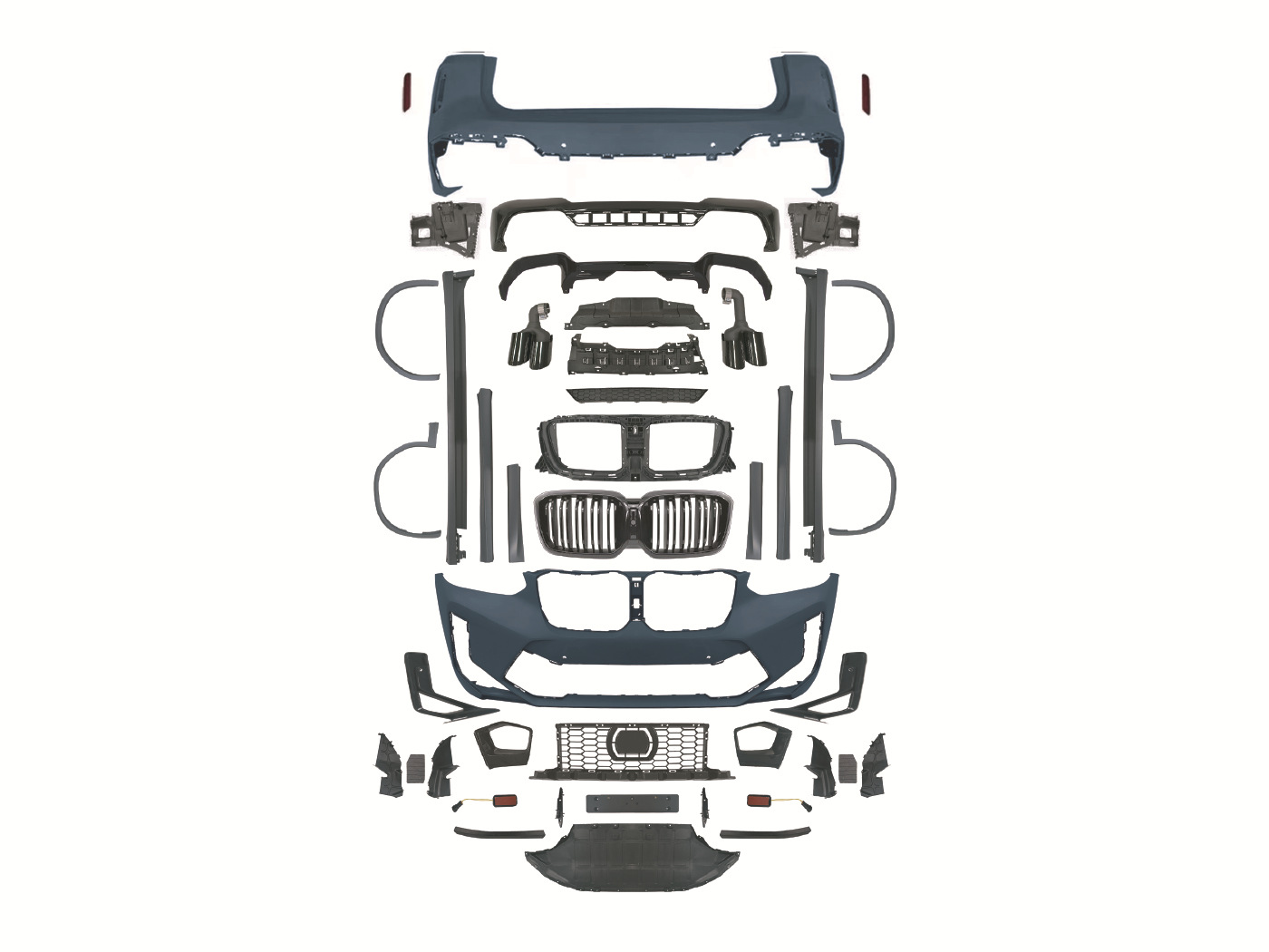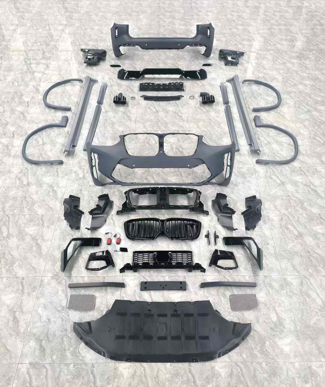 Tags: automotive conversion kit, BMW X3 exterior upgrade, car styling parts, front bumper assembly, G01 body kit, rear bumper diffuser, X3M style bumper