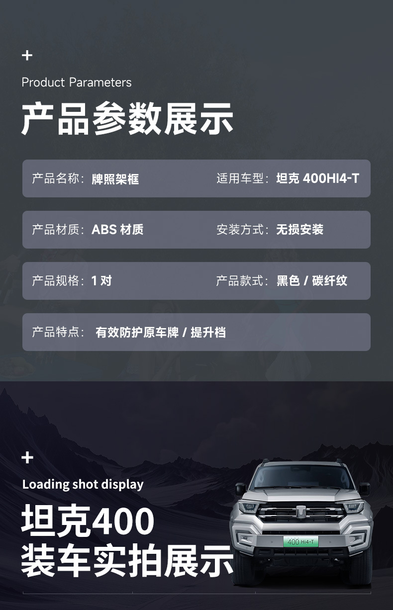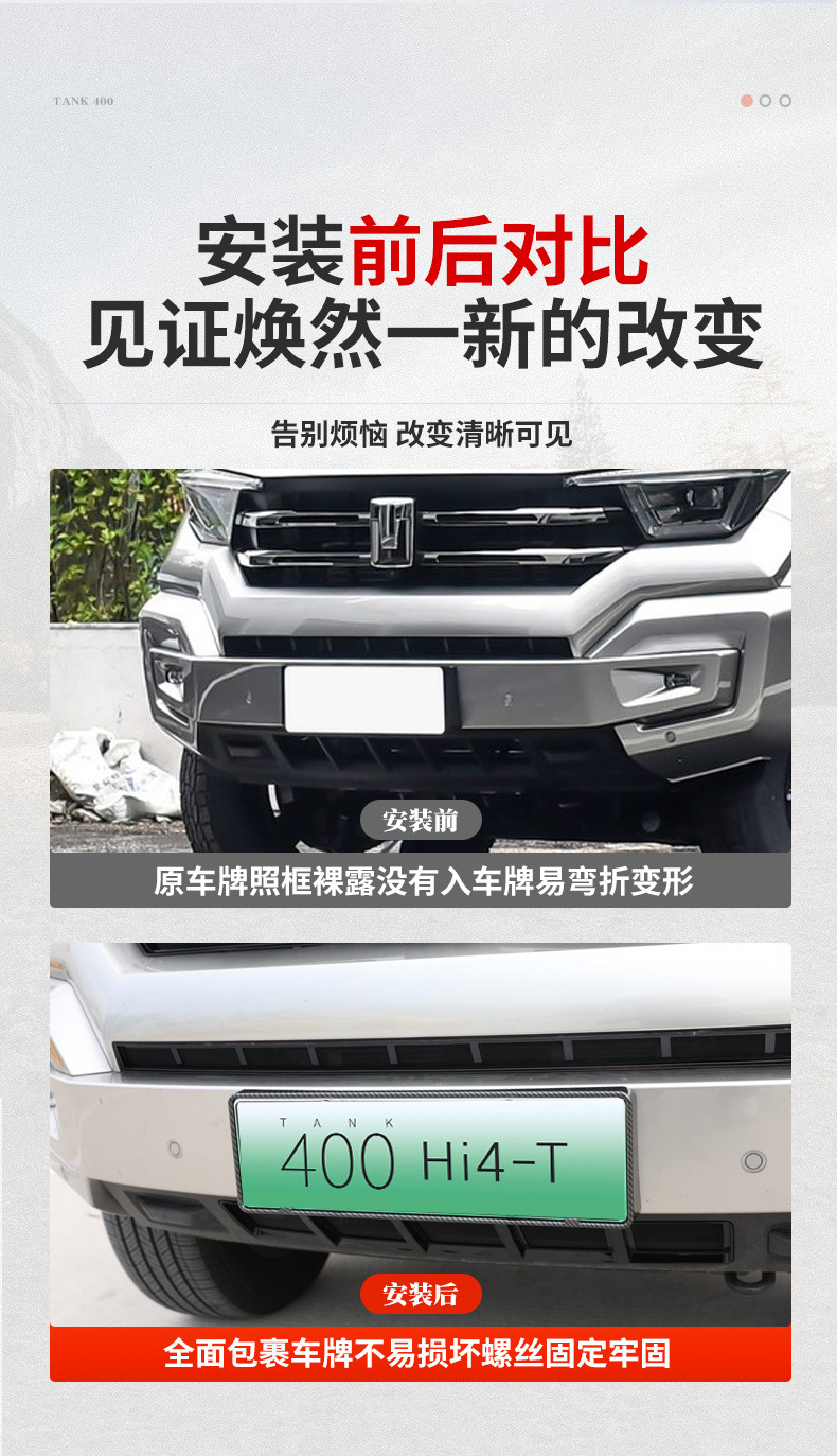Full Border Car License Plate Frame Bracket for Tank 400 Hi4-T Hybrid Anti-Theft Protective Guard Decor