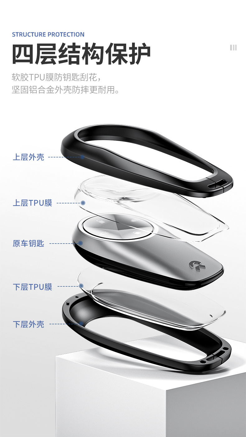 Upgrade your key protection with this premium aluminum alloy full-coverage fob cover. Designed for durability and signal clarity for modern electric vehicles.