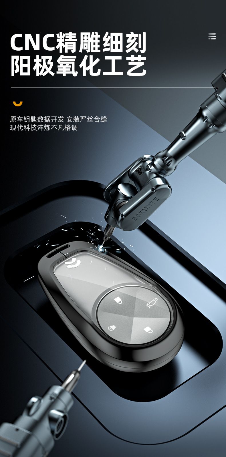 - Ergonomic metallic design maintains signal strength while adding a premium tactile feel to your car key.
