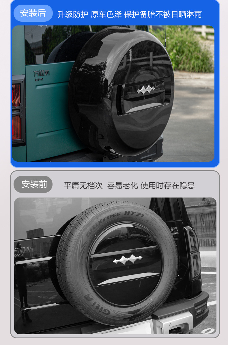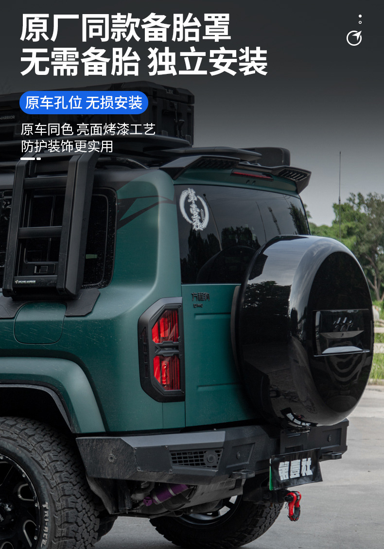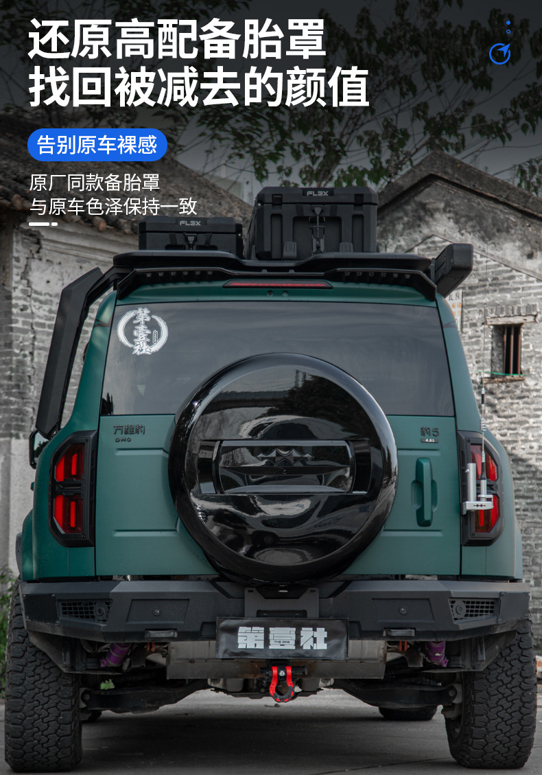 Upgrade your FangChengBao Leopard 5 with this full-coverage spare tire cover. Durable hard shell protection for off-road use while maintaining a factory-style look.