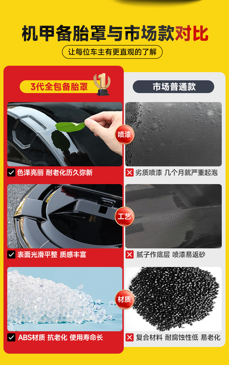 - Constructed from impact-resistant ABS and durable materials to shield the tire against UV rays, rain, dirt, and road debris.