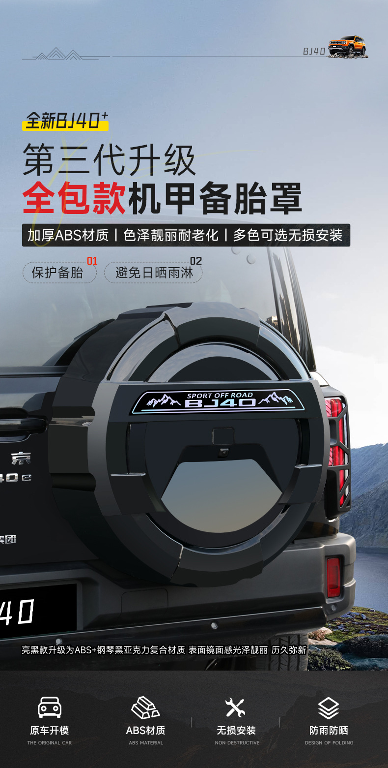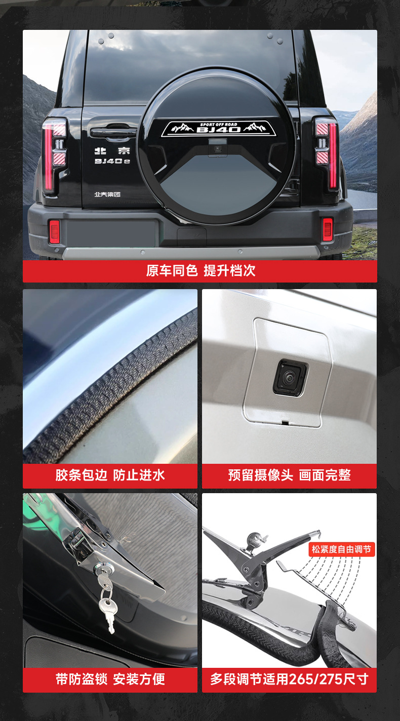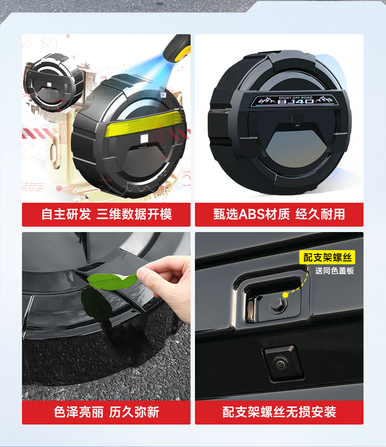 Tags: BJ40 accessories, exterior car gear, hard tire shell, off-road tire protector, rear tire case, Spare Tire Cover, wheel storage cover