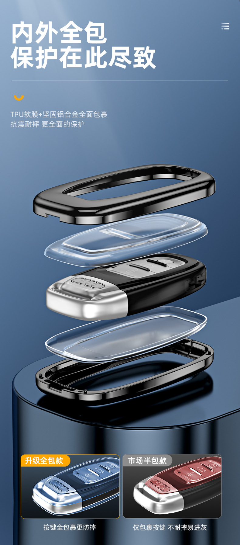 Protect your premium vehicle key with this full coverage TPU key fob cover. Designed for Audi A4L, A6L, and Q-series, offering superior scratch and drop protection.