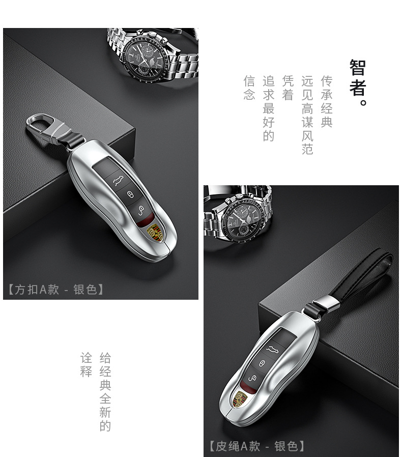 Full Coverage TPU Key Fob Cover Case with Keychain Protector for Porsche Cayenne Macan 911 Panamera 718 Taycan