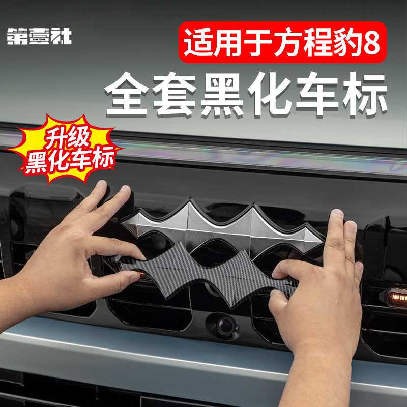 Upgrade your Fang Cheng Bao 8 with our ABS blackout emblem kit. Includes front, rear, and C-pillar covers for a premium matte black finish and durable protection.