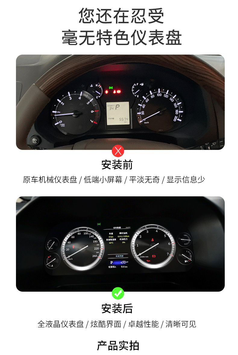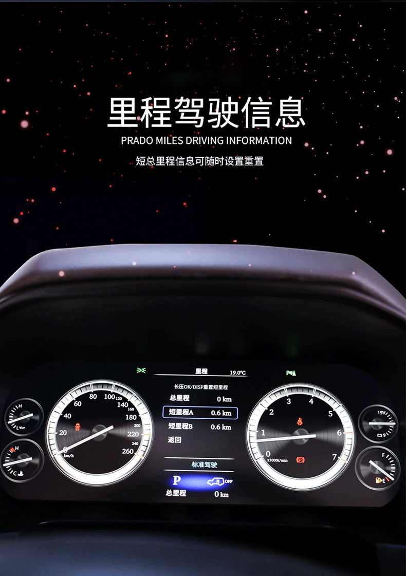 Upgrade your Toyota Prado with a high-definition full LCD digital instrument cluster and multi-function button assembly for enhanced data display and control.