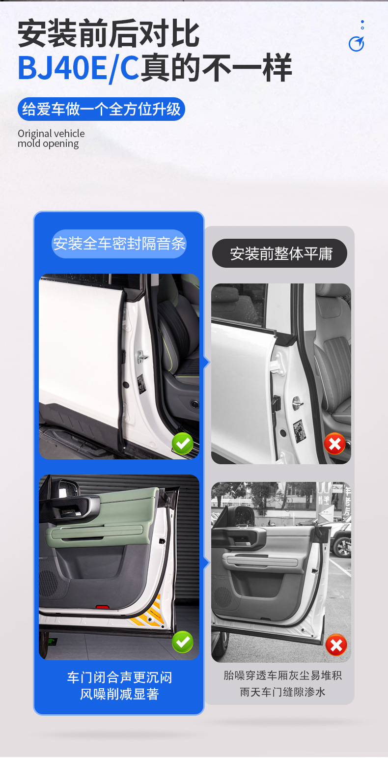 Upgrade your vehicle with this full car sealing strip kit for BJ40E. Effectively reduces wind noise, prevents dust entry, and improves cabin soundproofing.