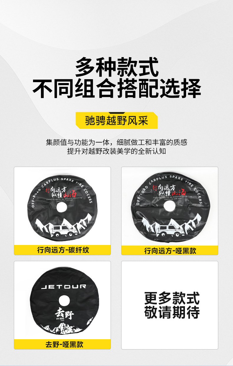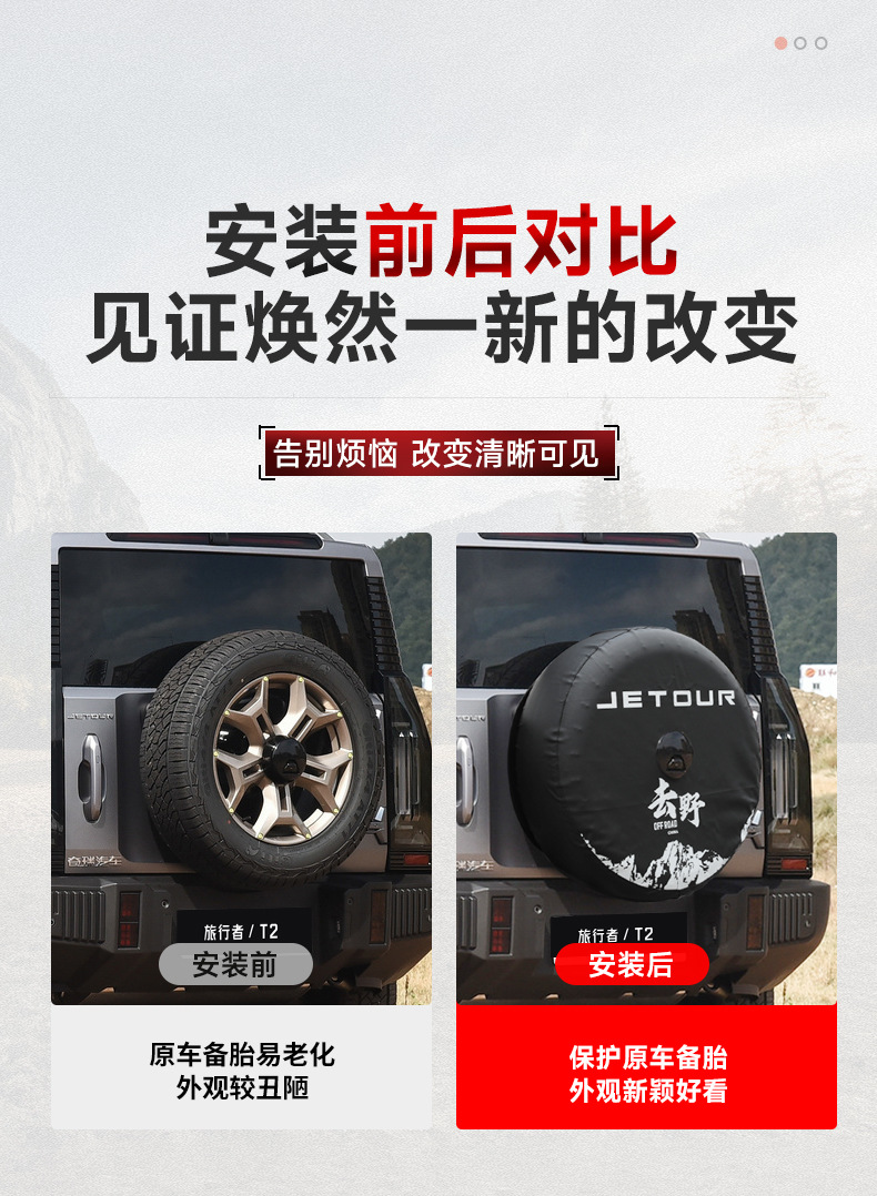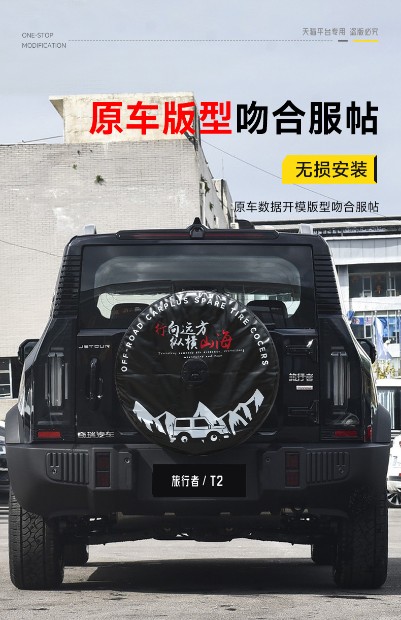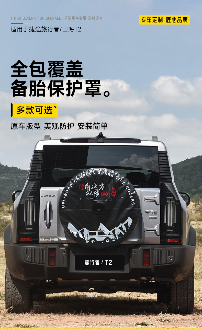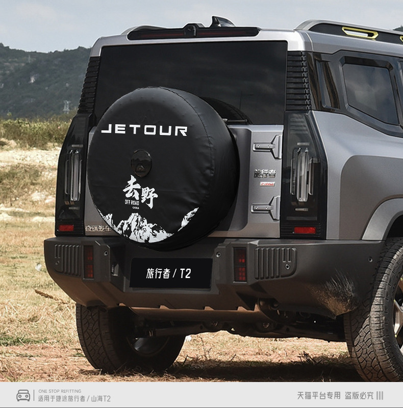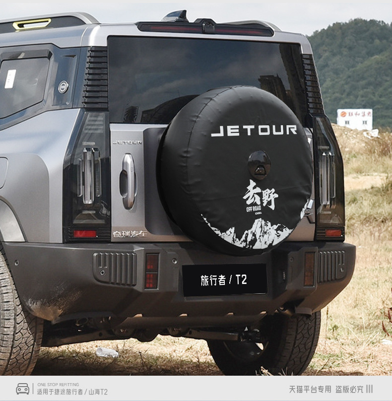 Protect your spare tire with this thickened faux leather cover for Jetour Traveller. Durable, weather-resistant shell designed for full-size rear wheels.