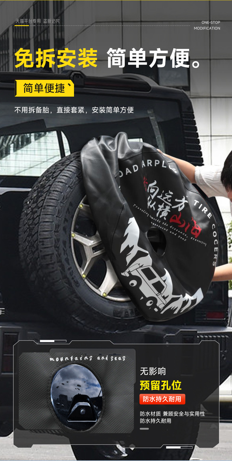 Tags: car exterior styling, faux leather wheel case, full size tire guard, Off-Road Vehicle Accessories, rear tire protector, Spare Tire Cover