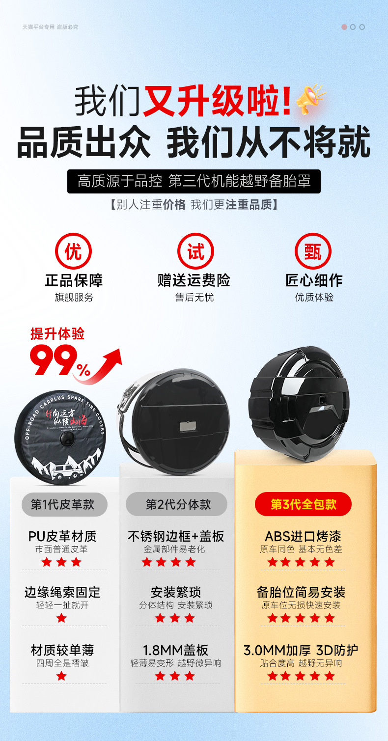 • Prevents tire aging and cracking caused by long-term UV exposure, rain, and road debris contamination.