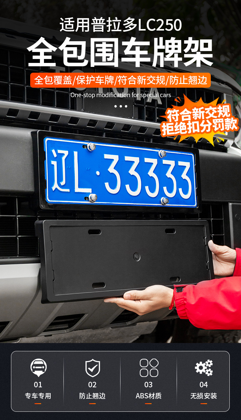 Tags: car plate holder, Front Bumper Bracket, LC250 accessories, License Plate Frame, license plate protector, Prado 2024 parts, SUV exterior trim