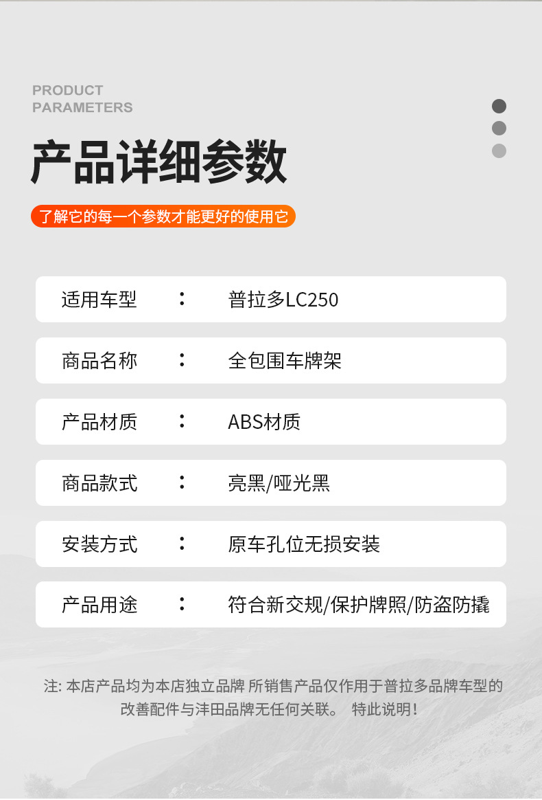Upgrade your 2024-2025 Prado LC250 with this full-wrapped license plate frame. Durable, weather-resistant design ensures plate protection and easy installation.