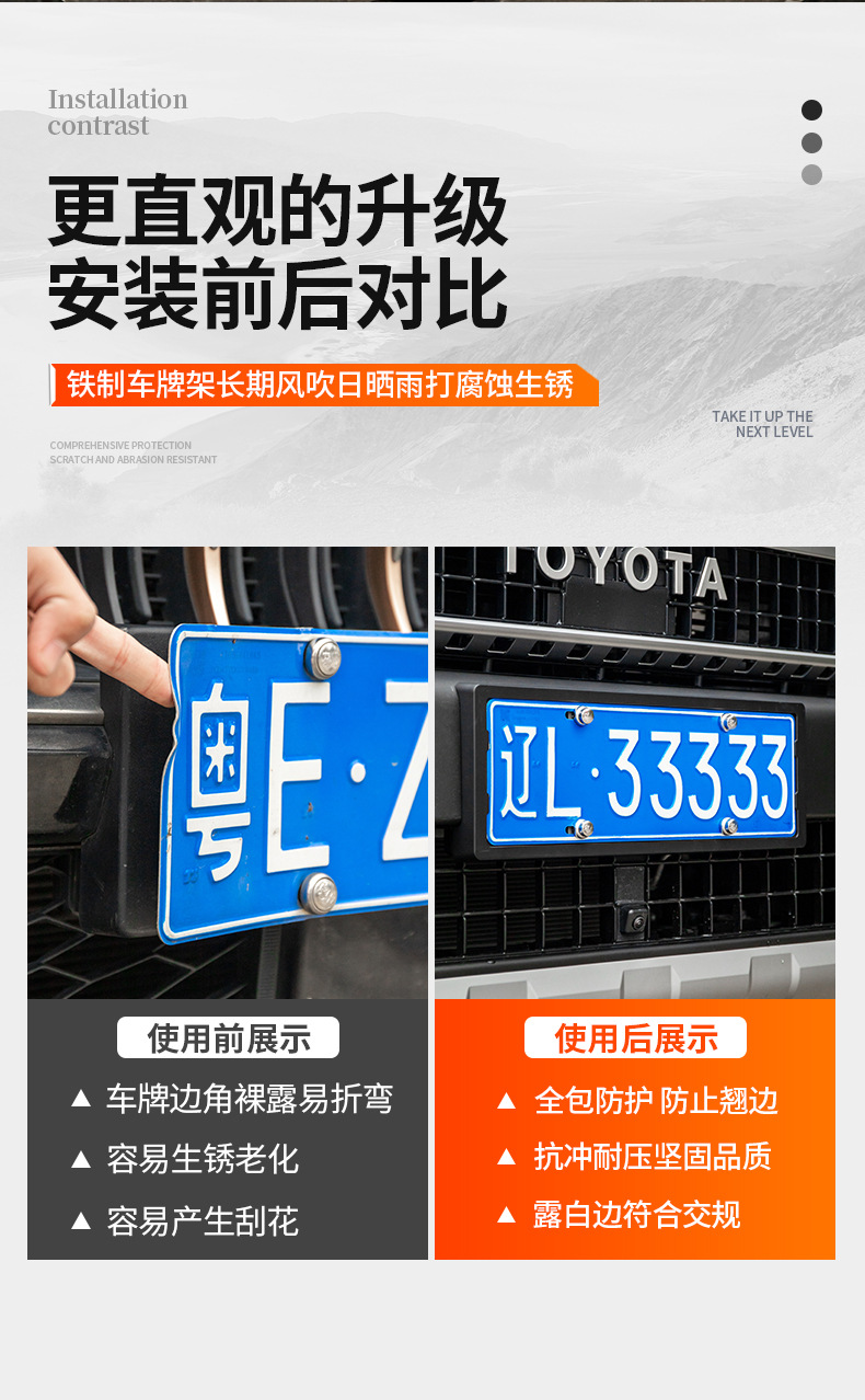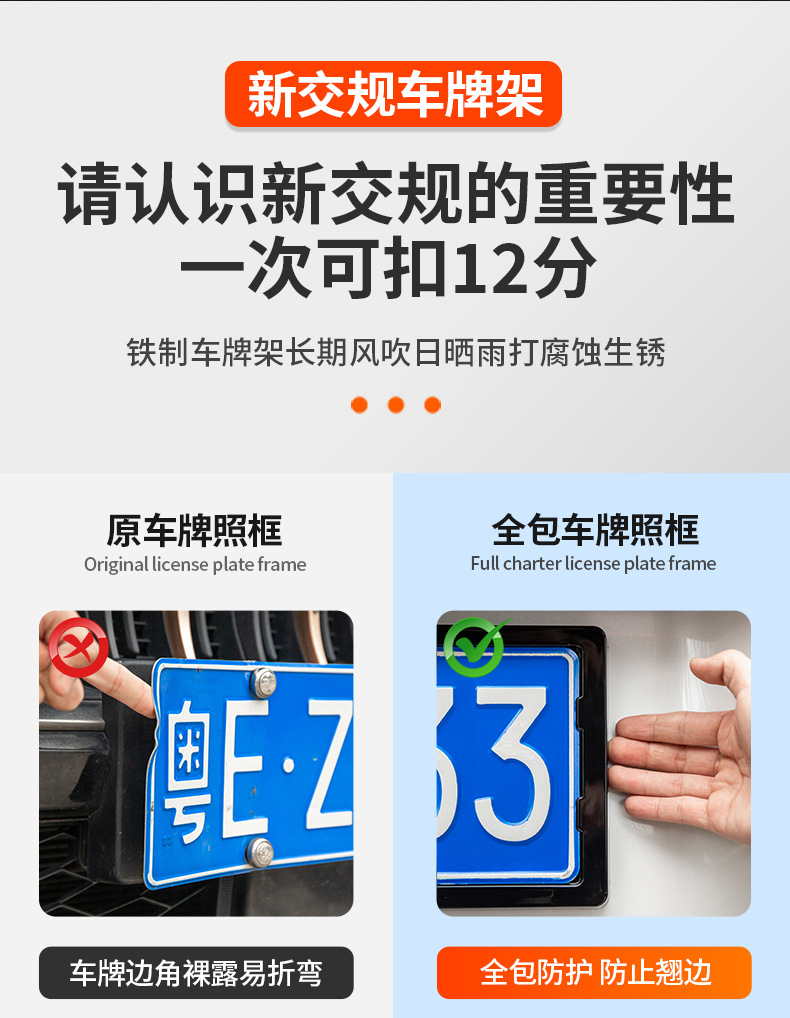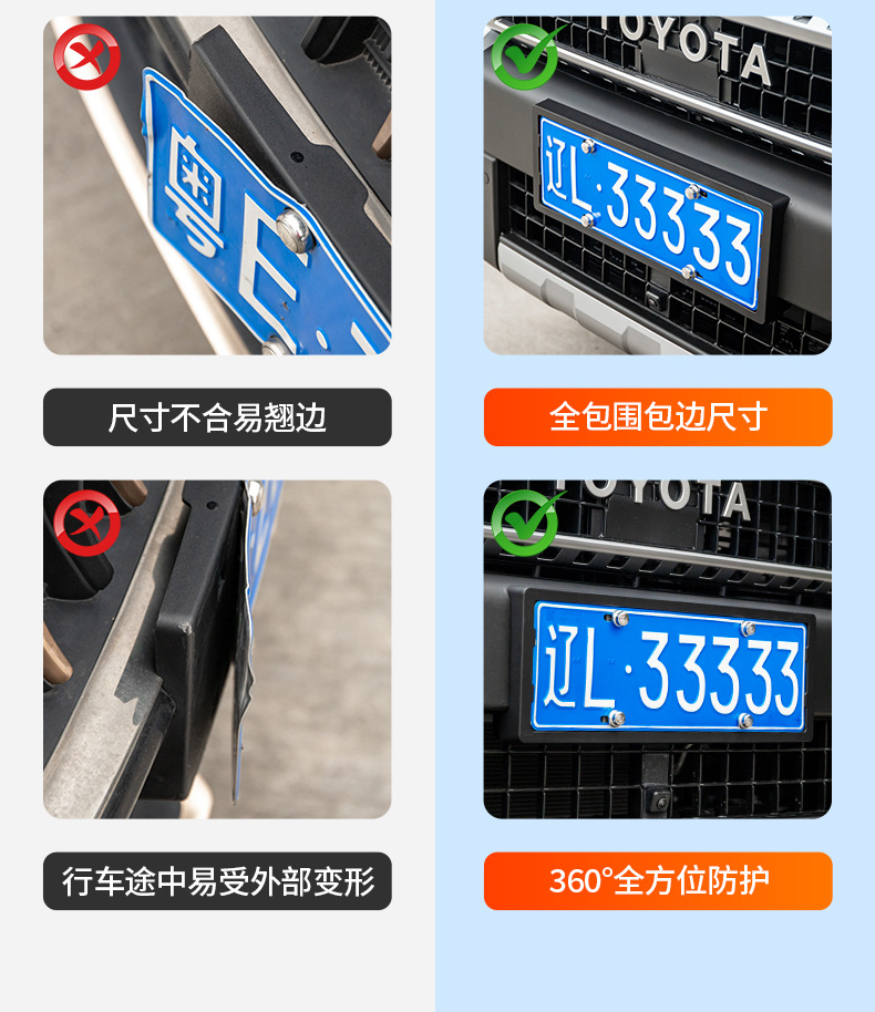 - Full-wrapped edge protection prevents license plate deformation and protects vehicle paint from scratches.
