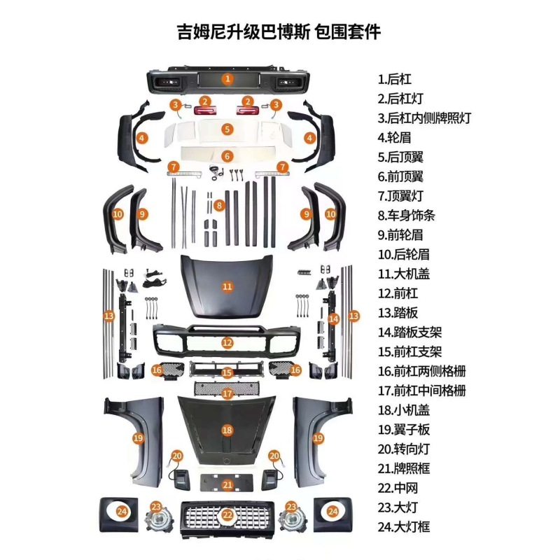 Tags: Body Kit Set, car styling parts, Front Bumper, Off-road Exterior, Rear Bumper, vehicle modification