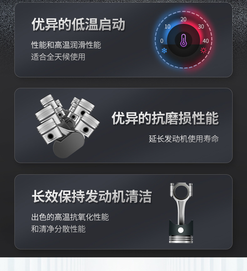 - Excellent low-temperature fluidity ensures quick oil circulation during cold starts to extend engine lifespan.