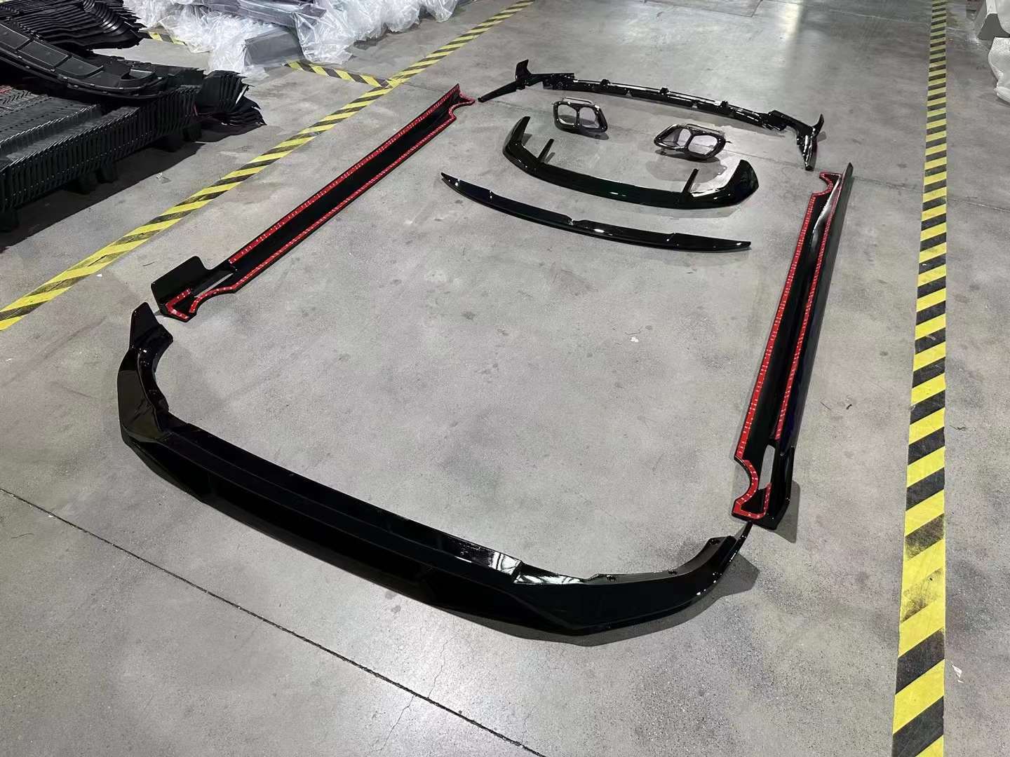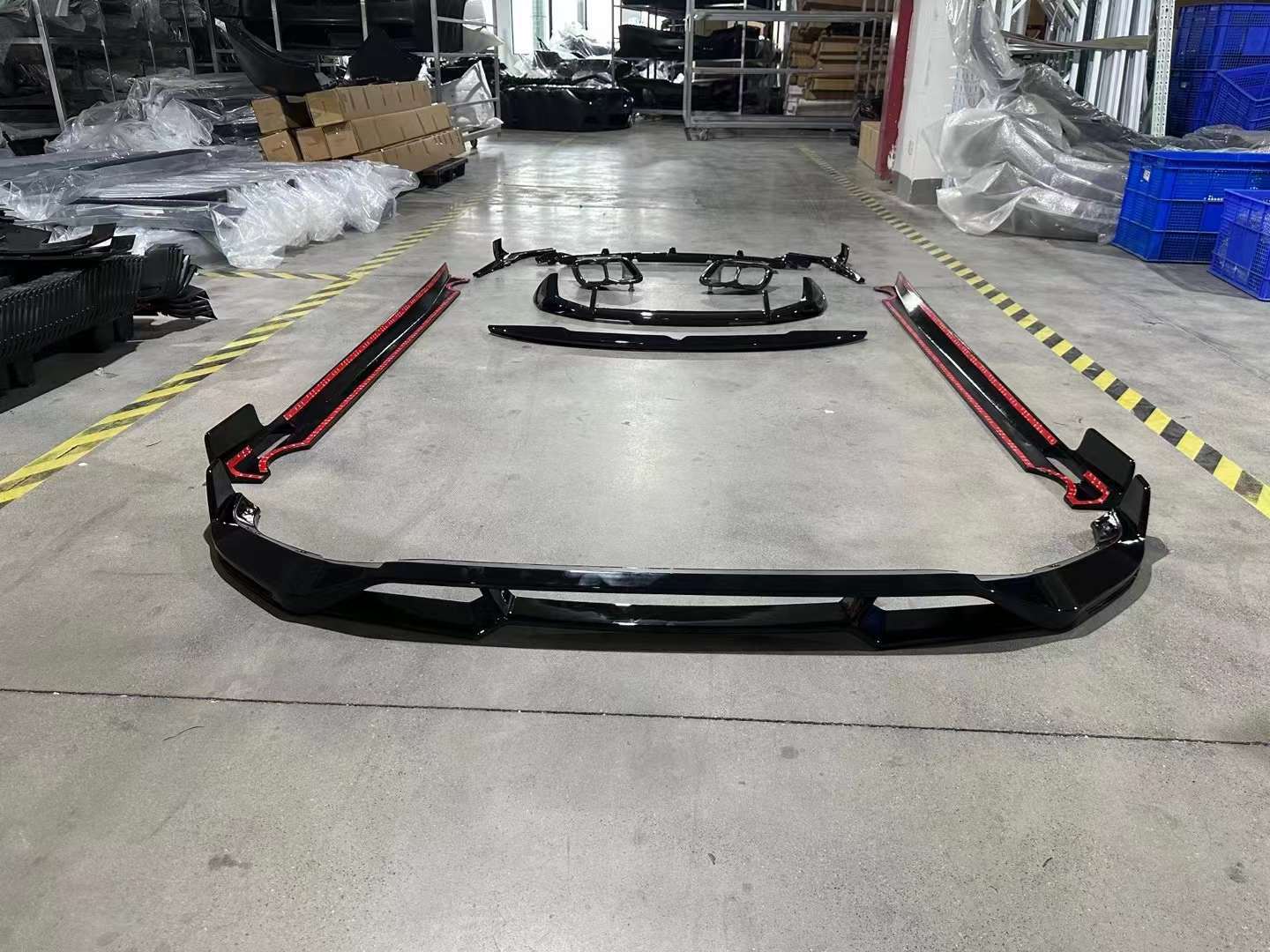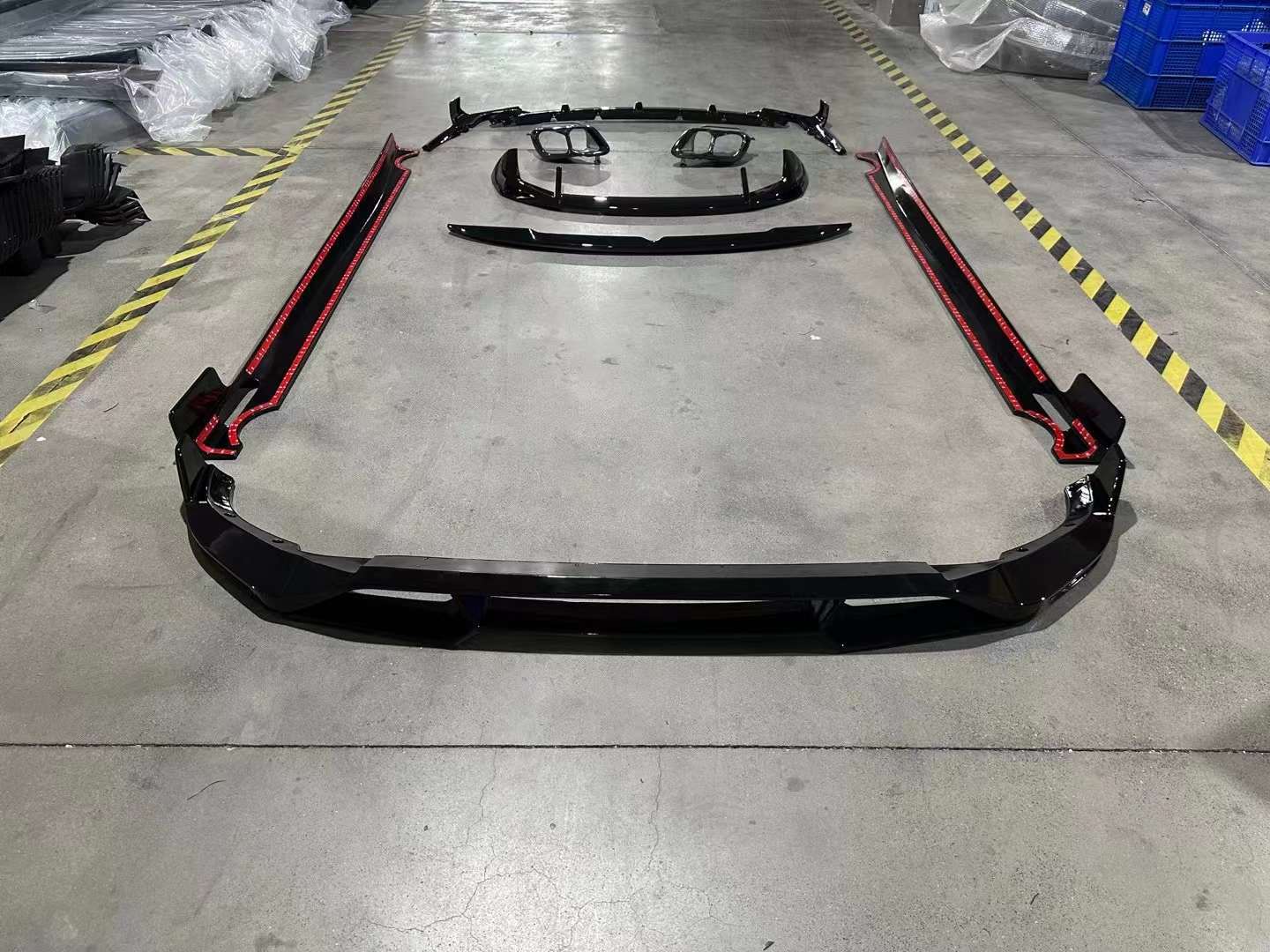 - Comprehensive exterior upgrade including front lip, side skirts, rear lip, and a matching trunk spoiler for a unified aesthetic.