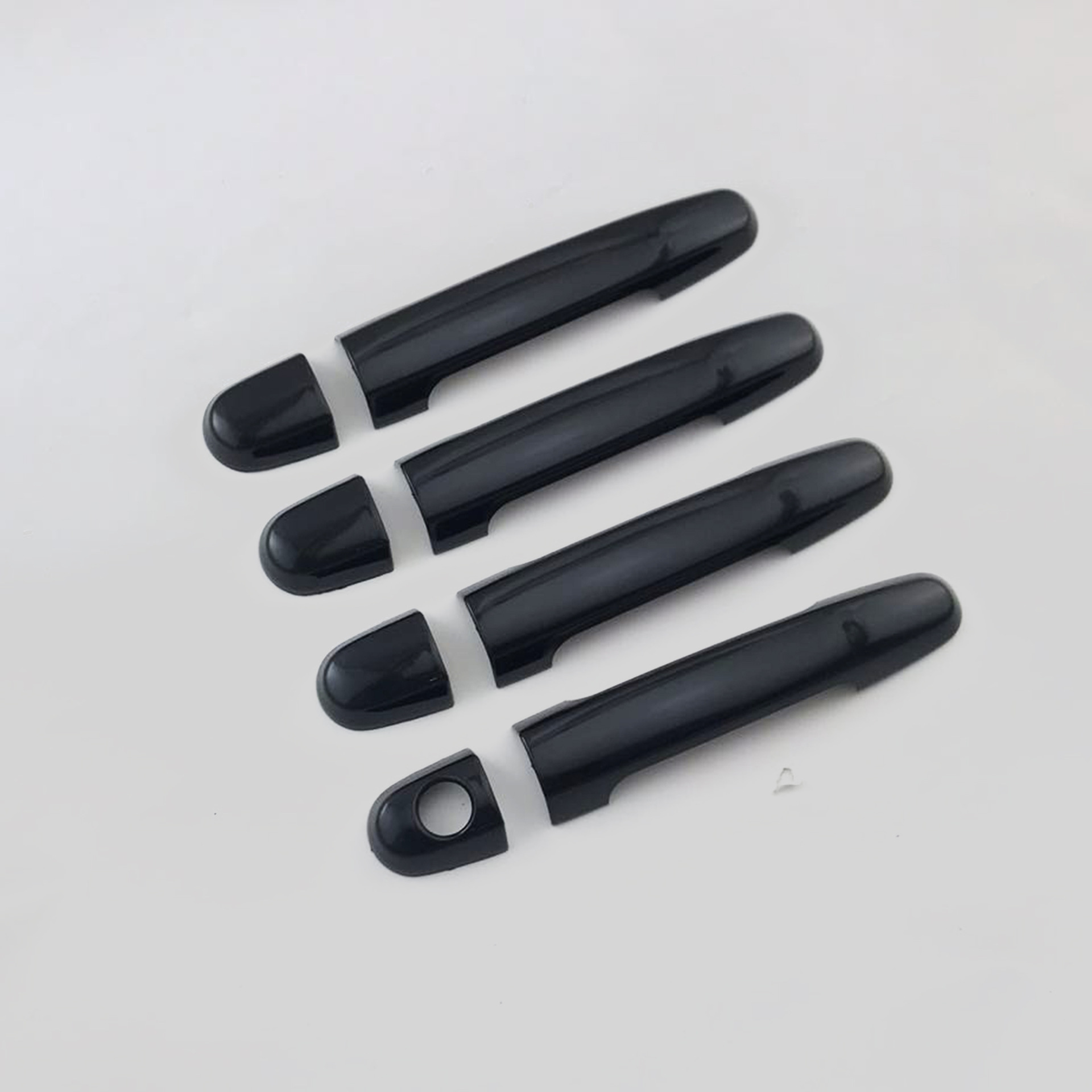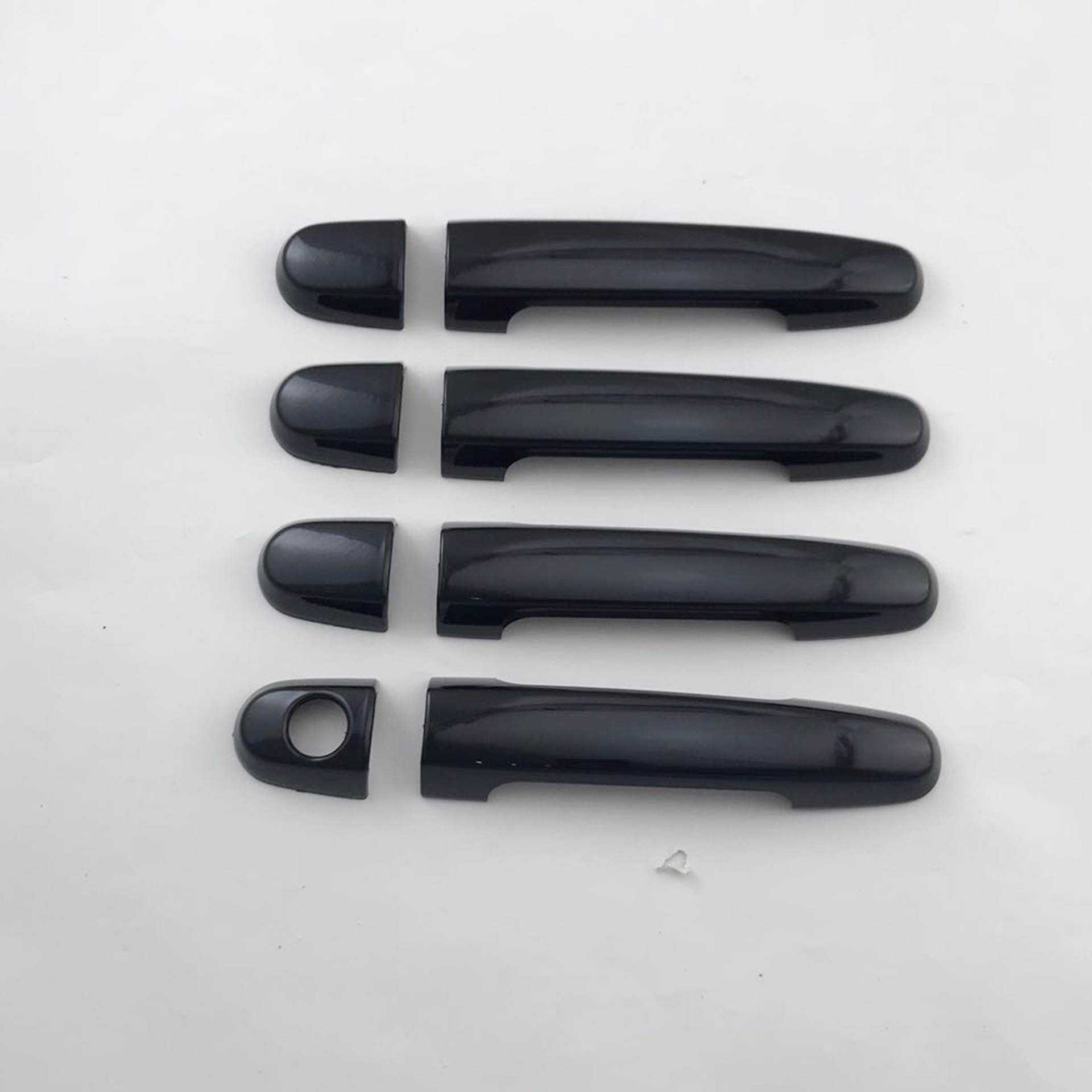 Tags: automotive styling accessories, car door trim stickers, door handle protector, exterior handle overlay, gloss black handle covers, glossy black car accents, handle garnish set
