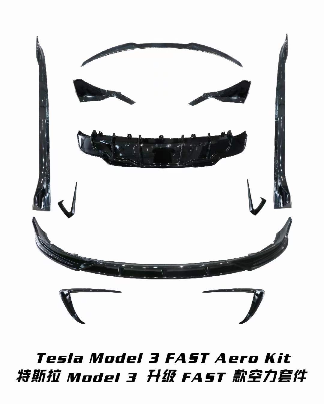 Gloss Black Full Body Kit for Tesla Model 3 and Model Y Front Lip Rear Diffuser and Side Skirts Set