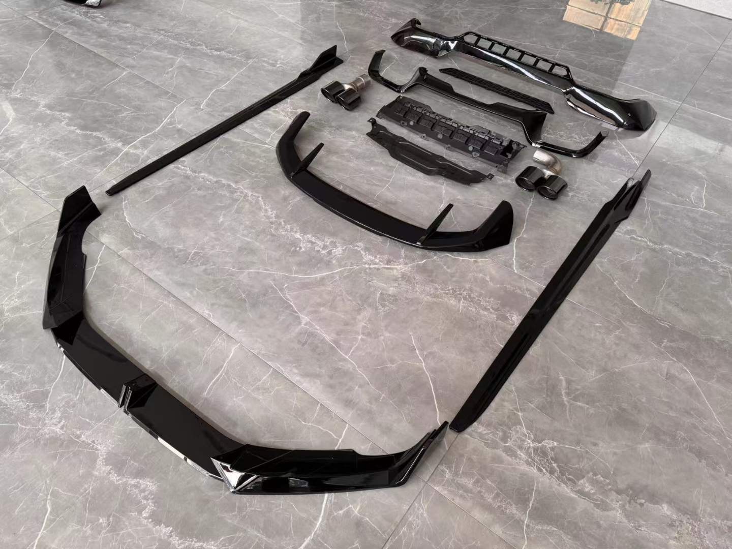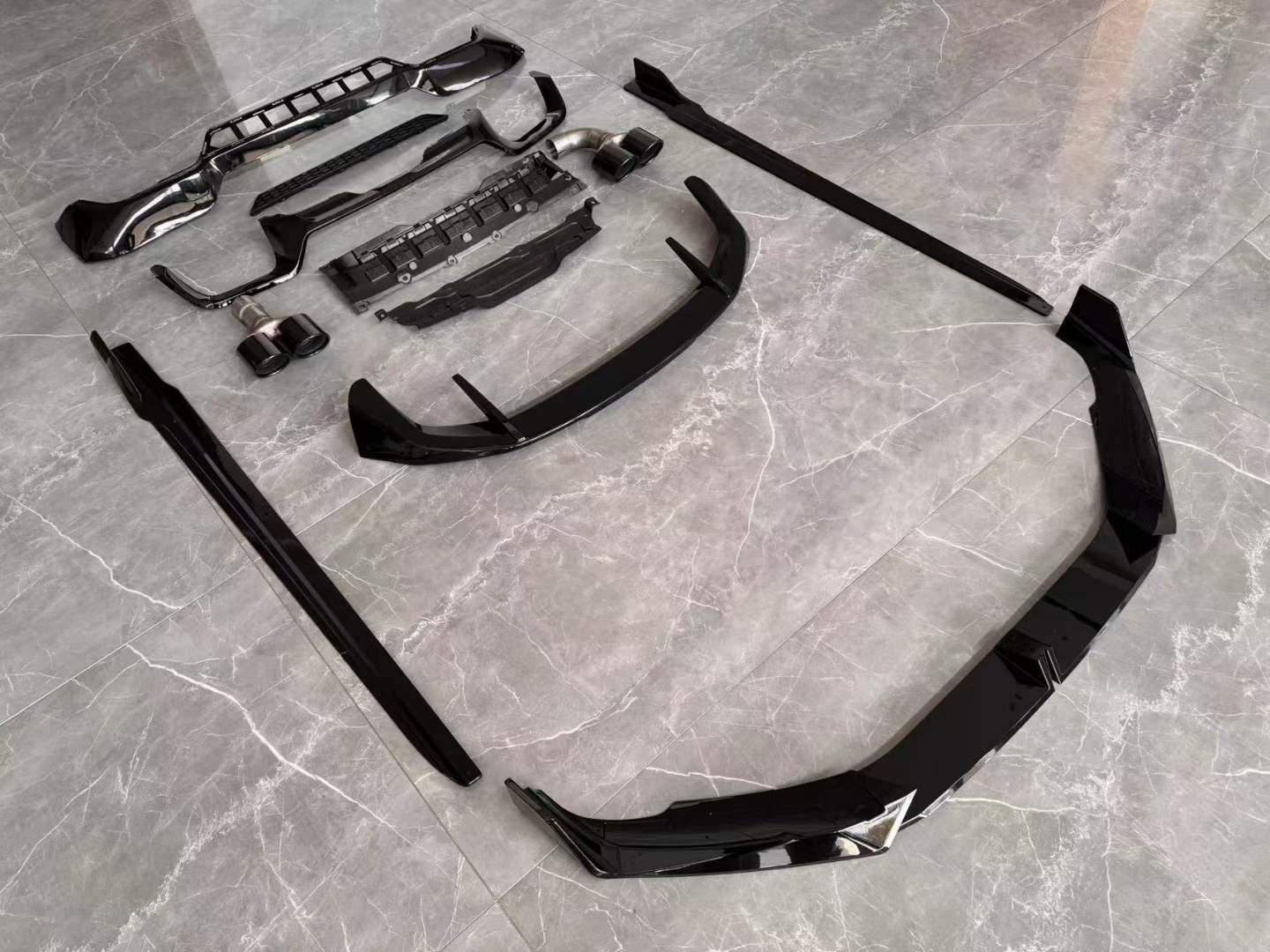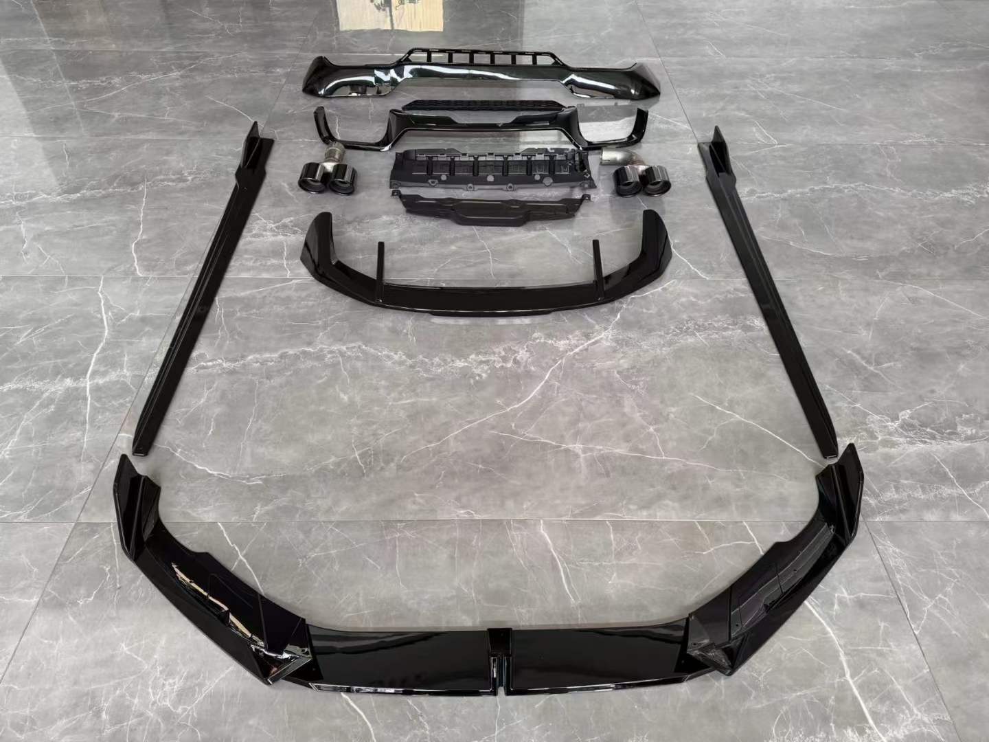 Tags: automotive side skirts, black knight car styling, BMW G01 body kit, exhaust tip upgrades, front lip splitter, rear bumper diffuser, rear trunk spoiler