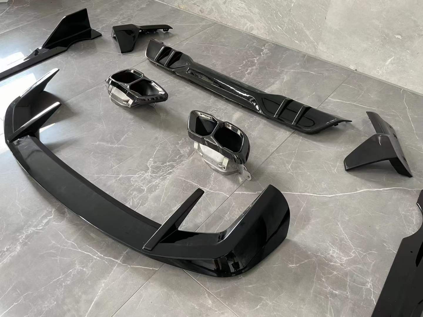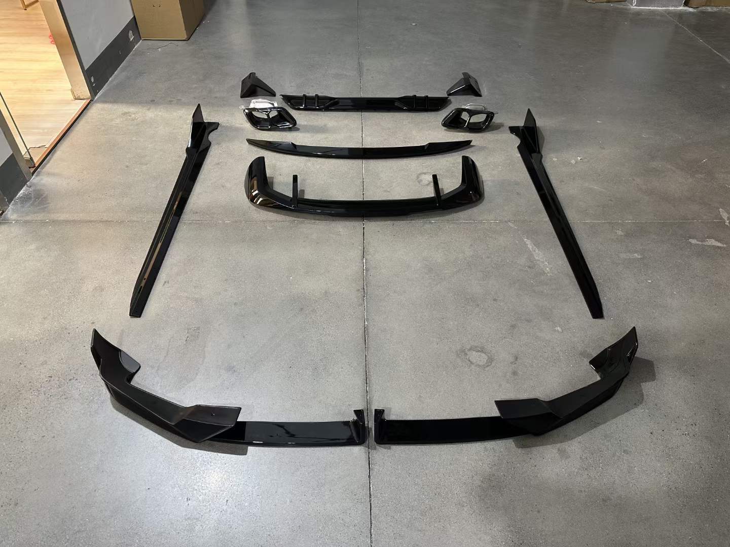 Upgrade your BMW X5 G05 LCI with this premium glossy black body kit. Includes front lip, side skirts, rear diffuser, and spoiler for a bold Performance aesthetic.