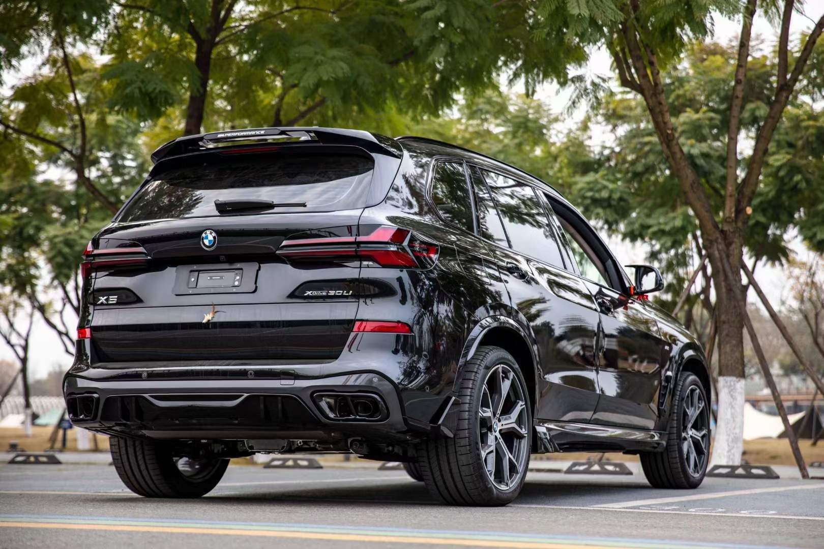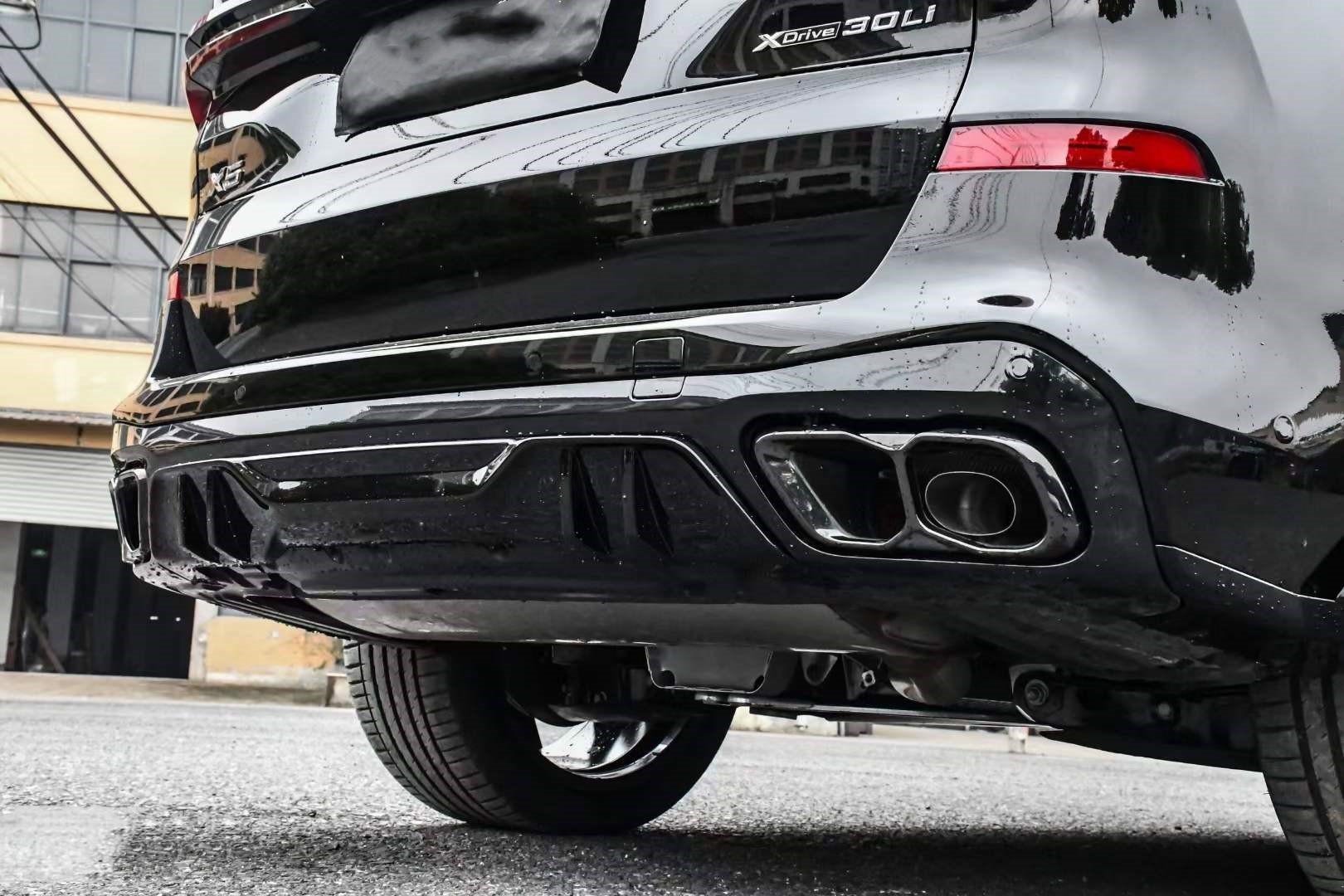 Tags: aerodynamic accessories, BMW X5 G05 body kit, front lip spoiler, G05 LCI styling, gloss black car parts, rear diffuser, side skirts