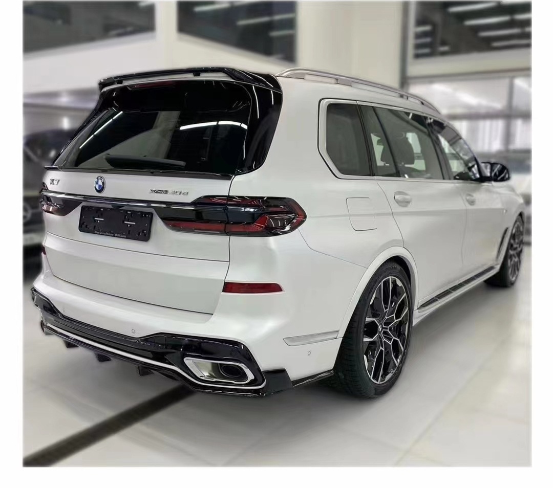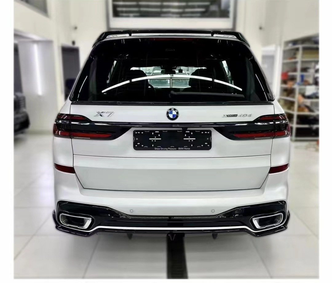 Upgrade your BMW X7 G07 with our premium gloss black body kit. Includes front lip, side skirts, and rear diffuser for a professional dark knight aesthetic.
