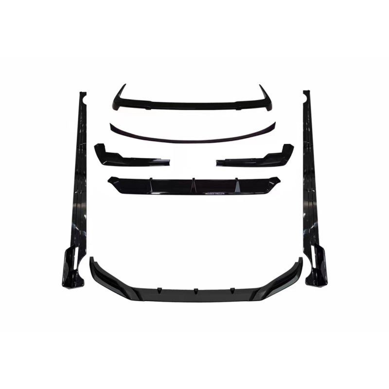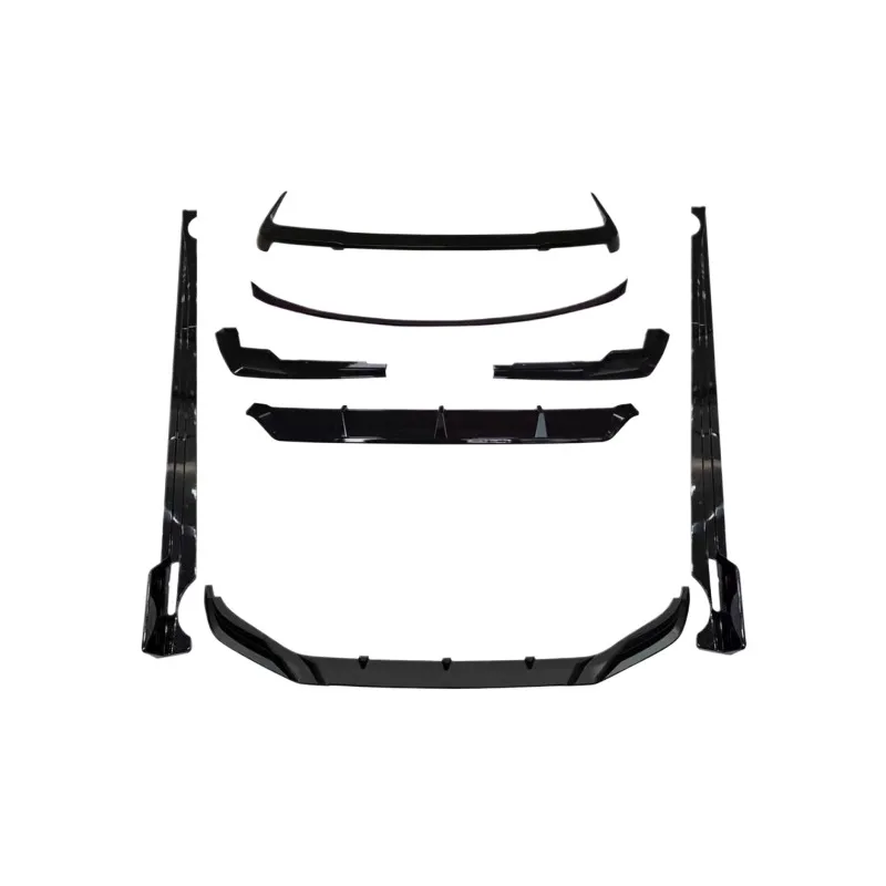 - Comprehensive package includes a front bumper lip, side skirt extensions, rear roof spoiler, and a rear bumper diffuser.