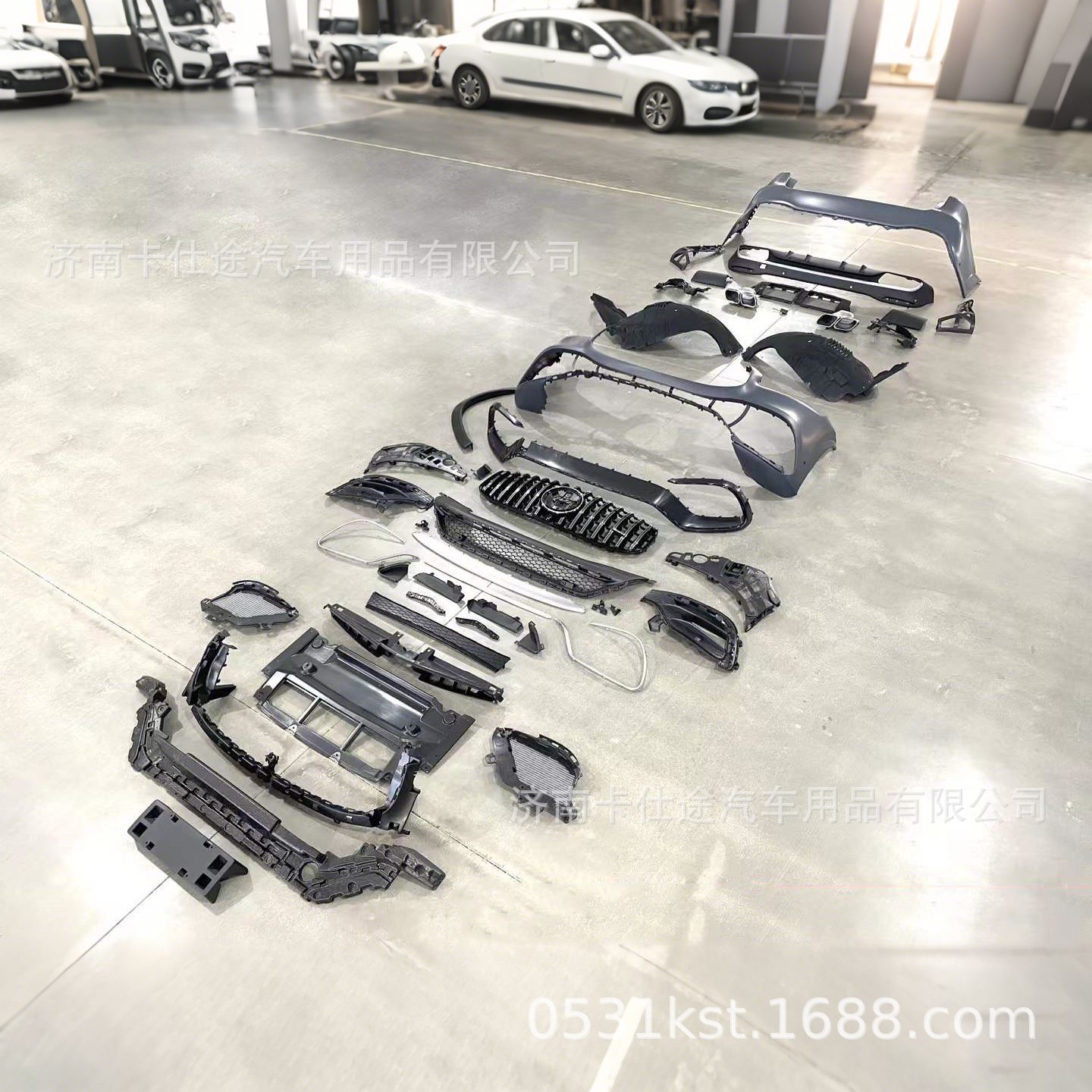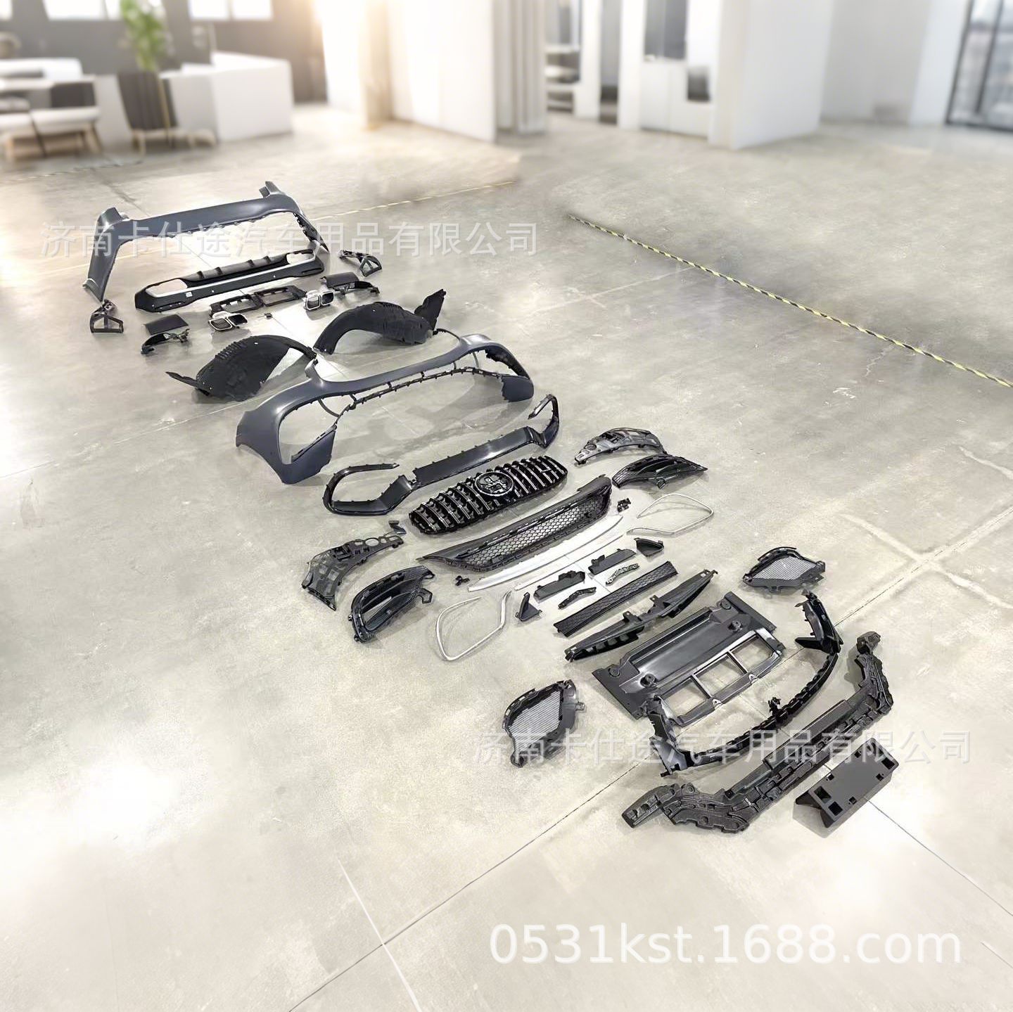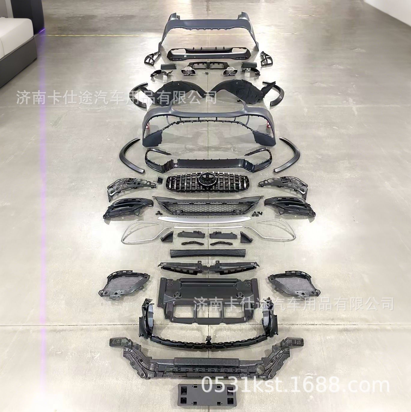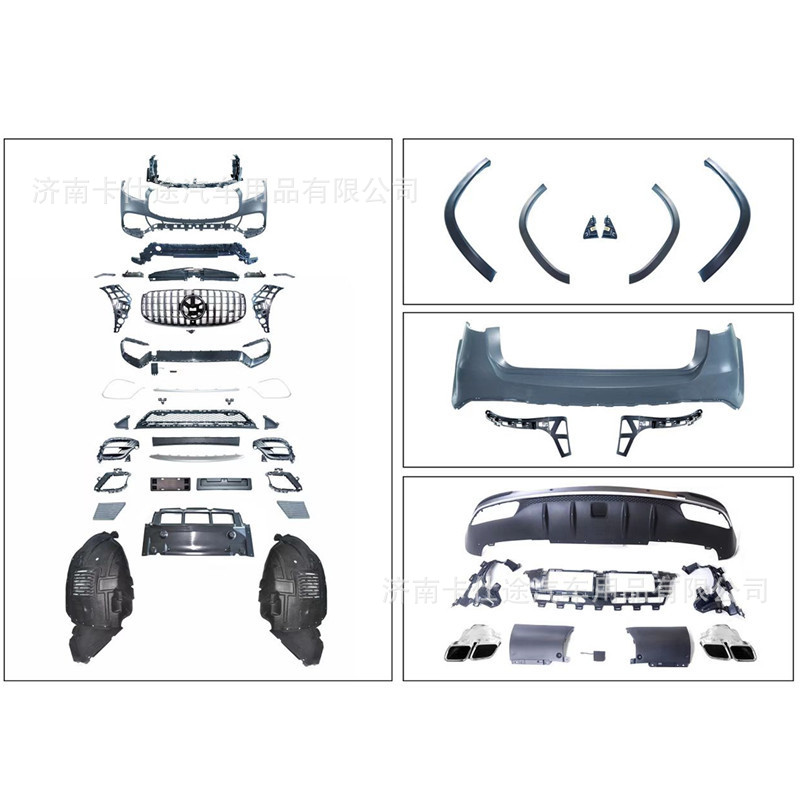 - Comprehensive kit includes front and rear bumper components styled after the performance GLS63 trim level.