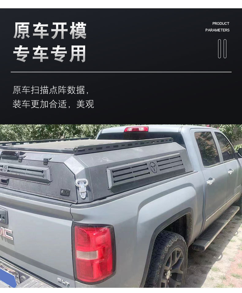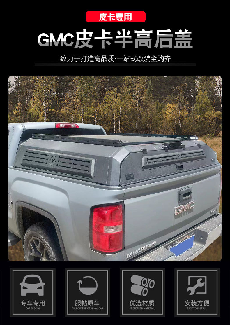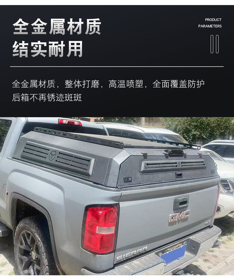 Tags: GMC Sierra rack, overland bed rack, pickup camping topper, steel bed canopy, truck bed cap, truck cargo storage, 锰钢半高盖