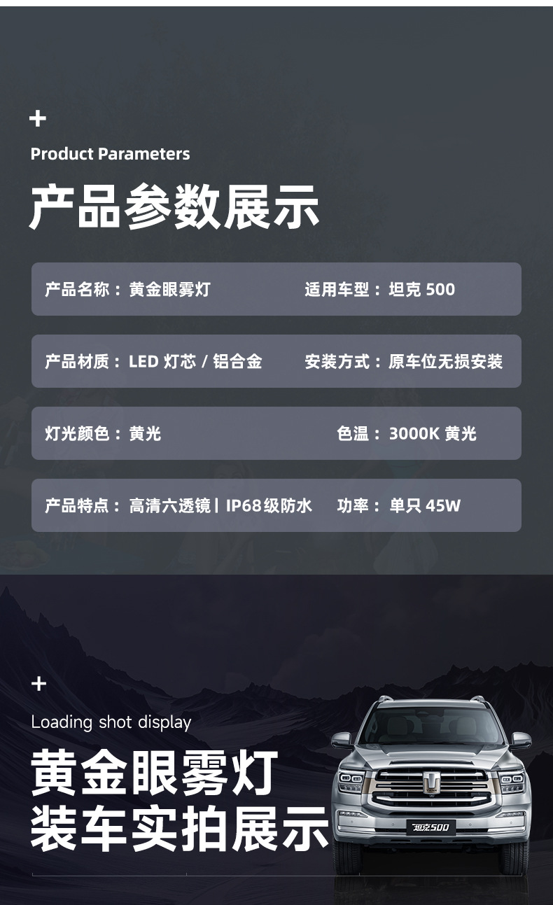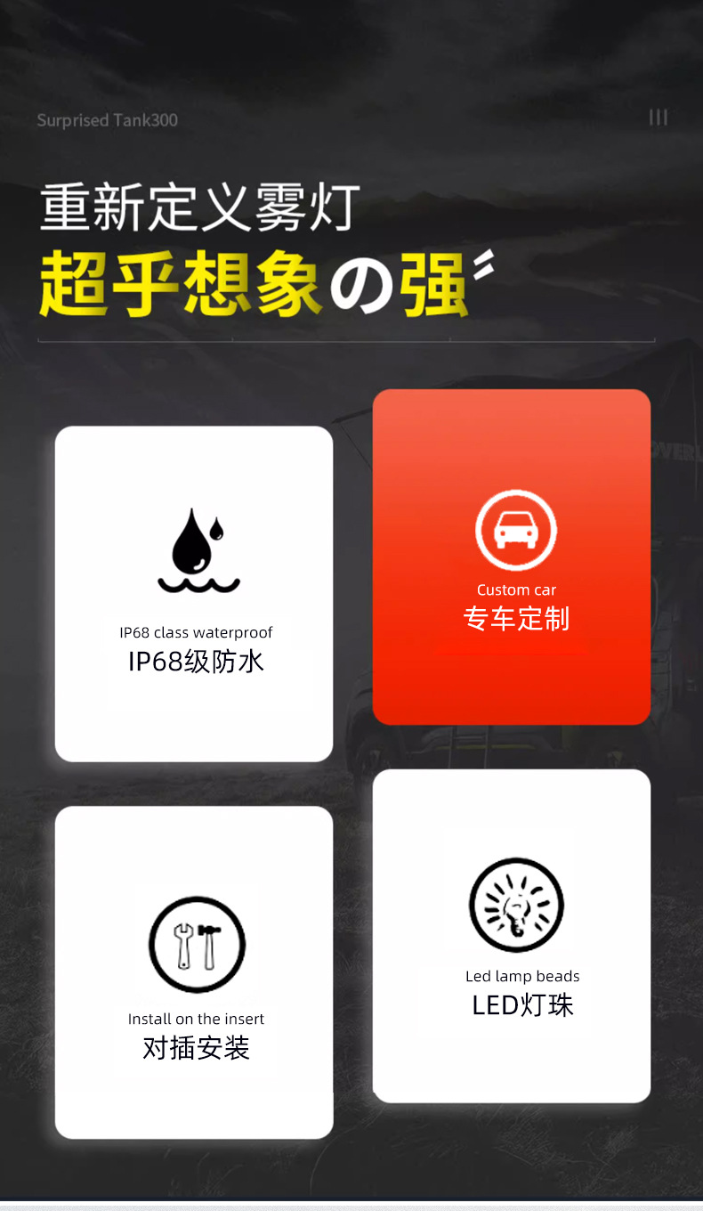 Upgrade your visibility with the Golden Eye Six-Lens Fog Light for Tank 500. High penetration yellow light ensures safety in heavy rain and thick fog conditions.