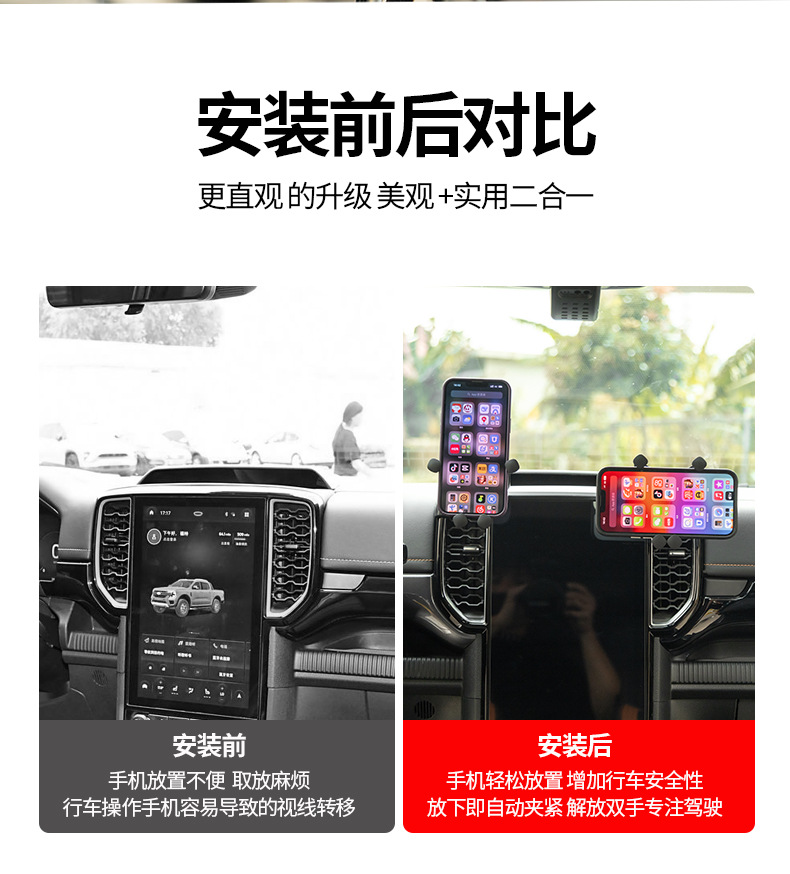 Upgrade your Ford Ranger with this custom-fit car phone mount. Featuring a stable air vent base and one-handed gravity grip for safe, easy navigation access.