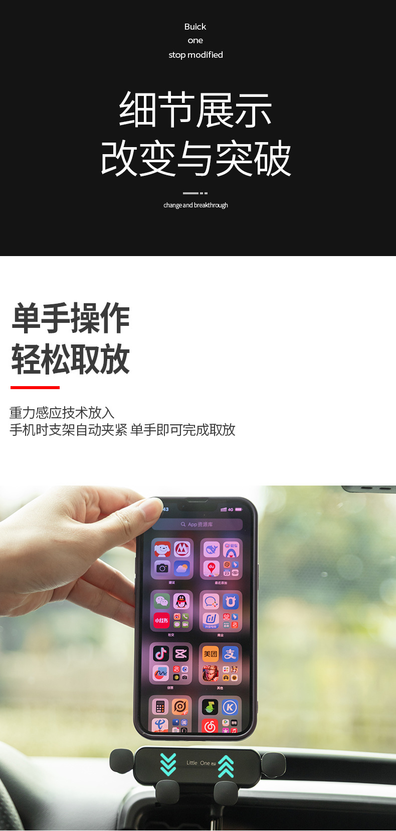 - Gravity-linkage design allows for easy one-handed operation to lock or release your smartphone instantly.