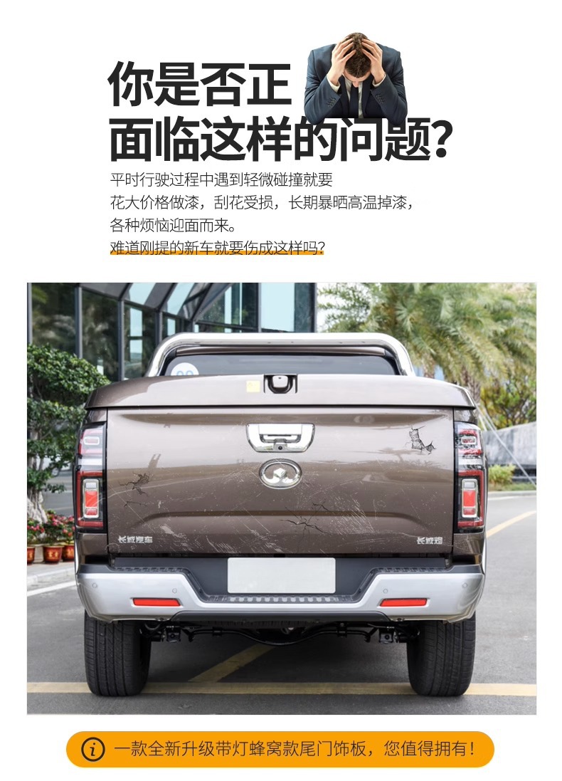 Great Wall Gun Tail Door Guard Plate Decorative Plate Commercial Passenger Off-road Edition Trunk Trim Plate Pickup Truck Modification Special Accessories