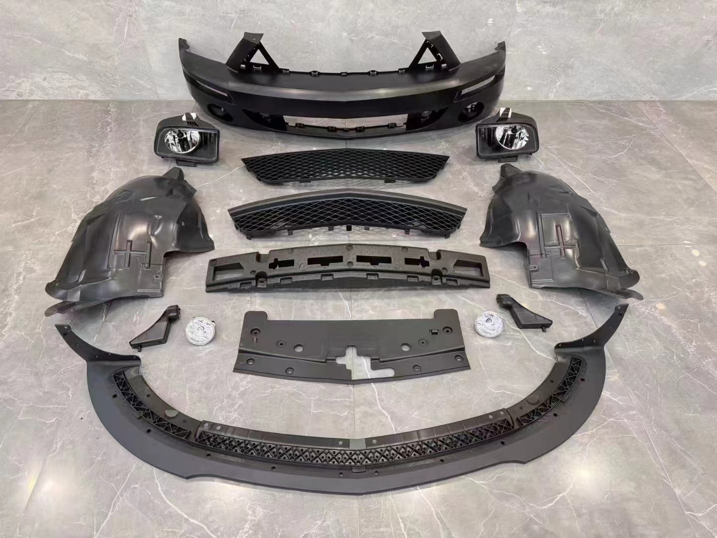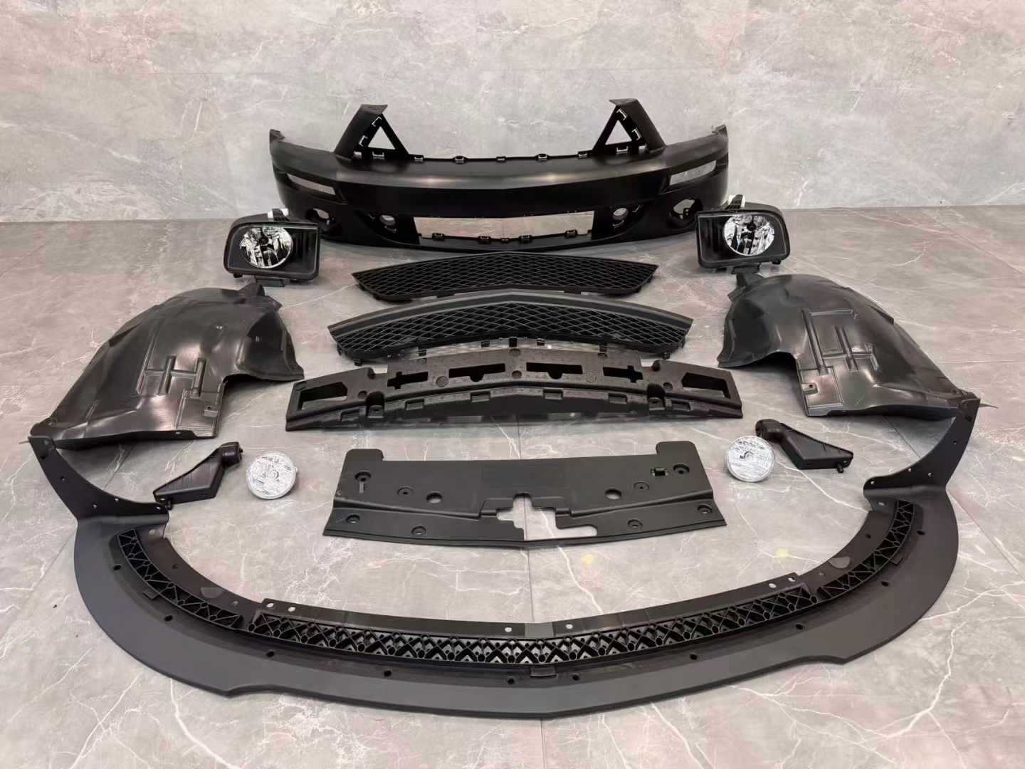 Tags: 2005-2009 Mustang parts, automotive replacement bumper, car exterior modification, front fascia assembly, GT500 style body kit, Mustang front bumper