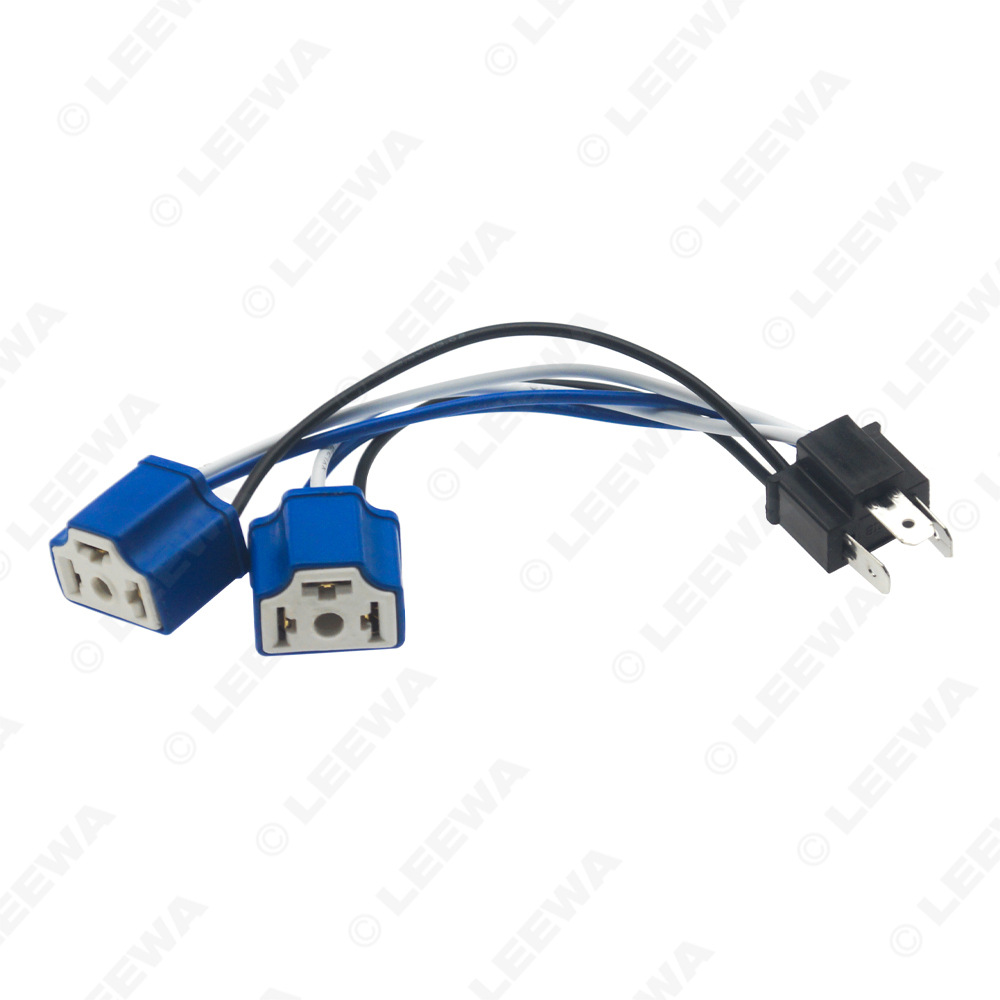 Tags: ceramic headlight socket, h4 adapter cable, h4 light plug, headlight extension wire, led light connector, male to female harness