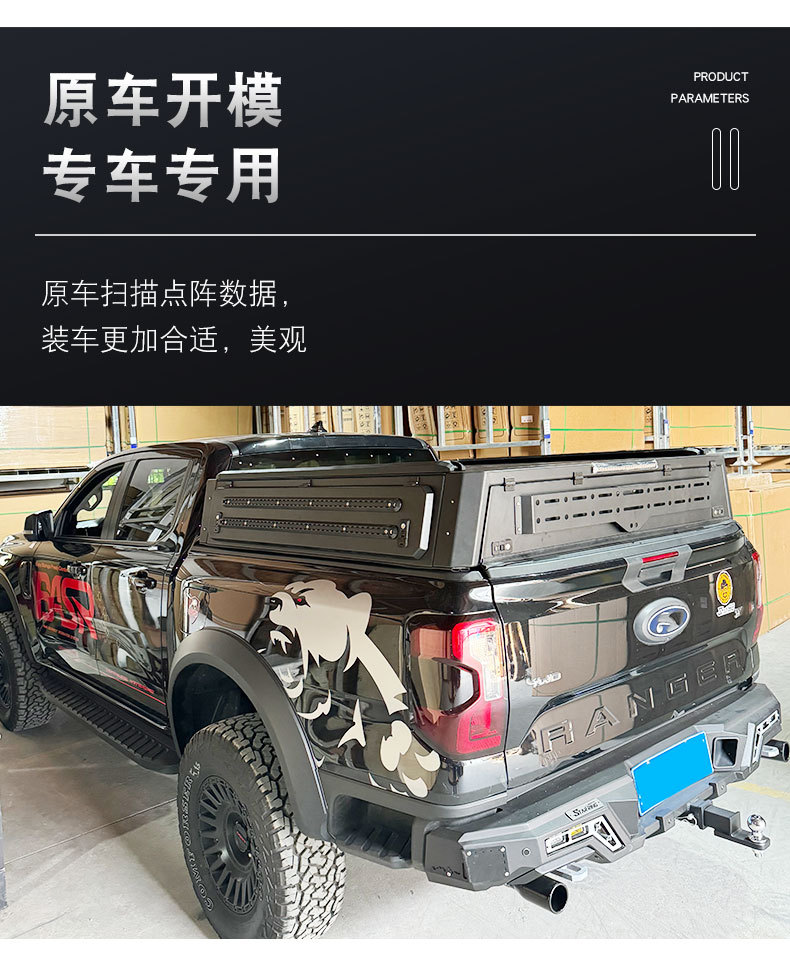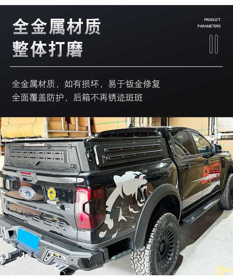 Enhance your Ford Ranger T9 with this premium half-height tri-fold truck bed canopy. Durable, secure, and easy to access with a three-door opening mechanism.