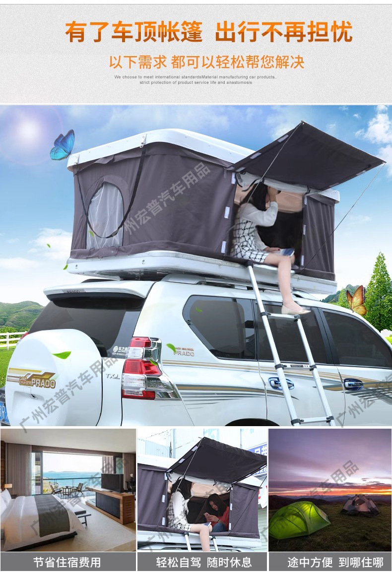 Hard Shell Roof Top Tent Foldable Car Camping Tent Waterproof Surface for Land Cruiser Prado
