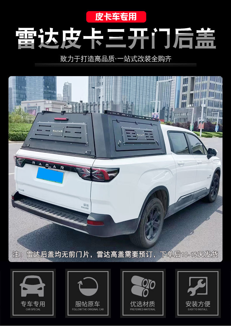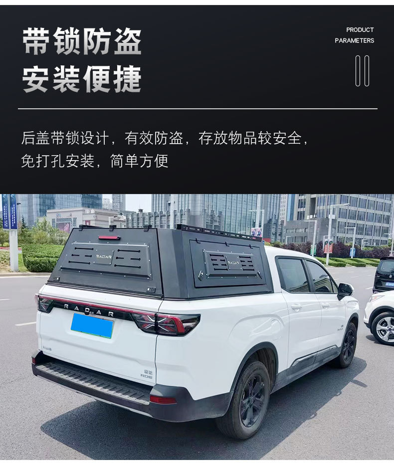 Tags: cargo box cover, heavy duty truck shell, manganese steel topper, pickup truck topper, RADAR RD6 cover, tri-fold truck cap, truck bed canopy