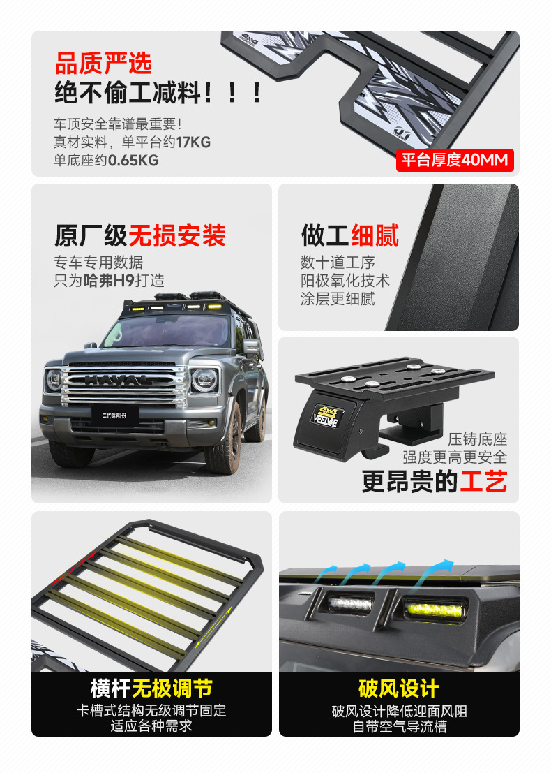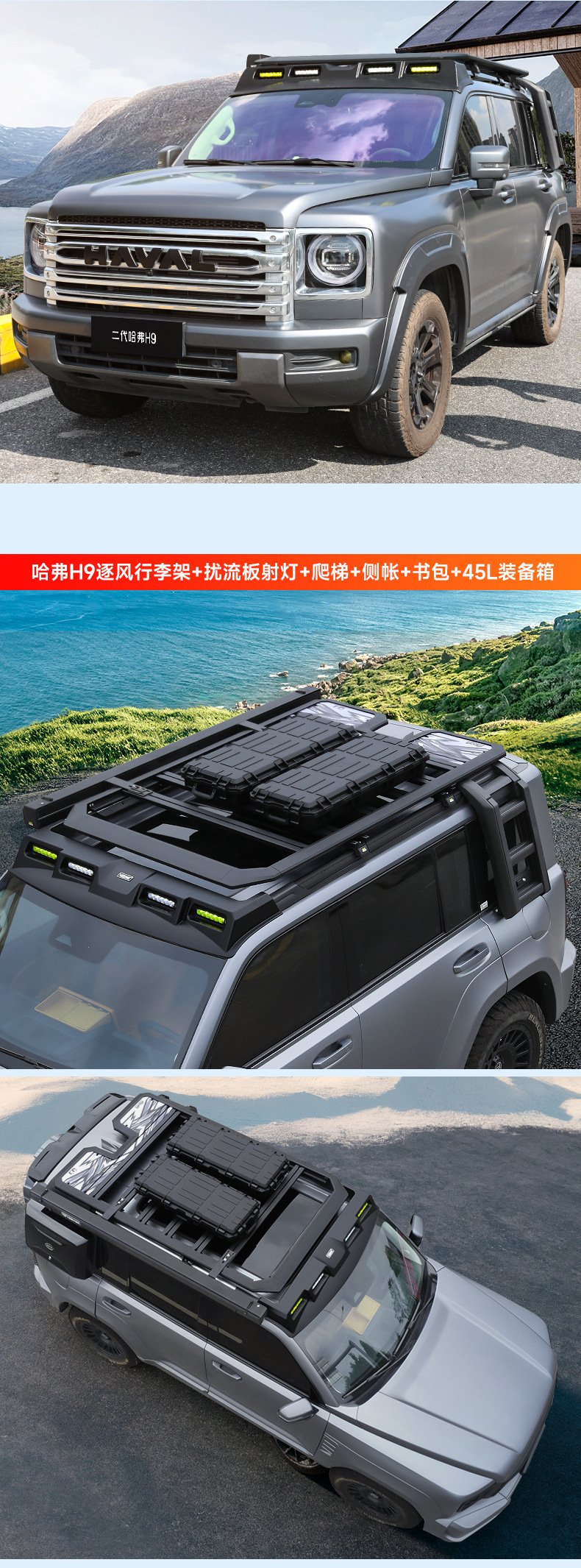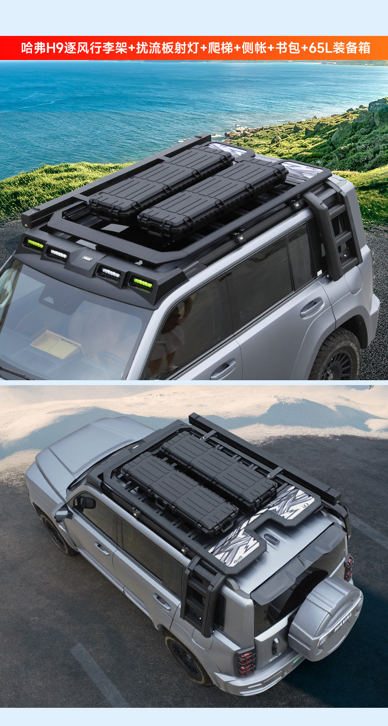 Haval H9 Wind-Chasing Luggage Rack Frame Roof Spotlight Roof Platform Side Ladder Backpack Side Tent Off-Road Modification Accessories