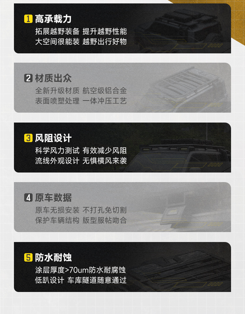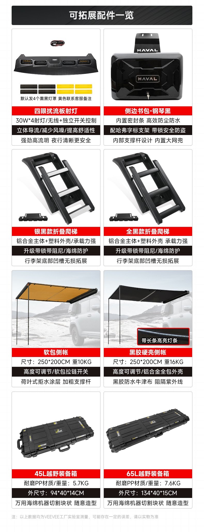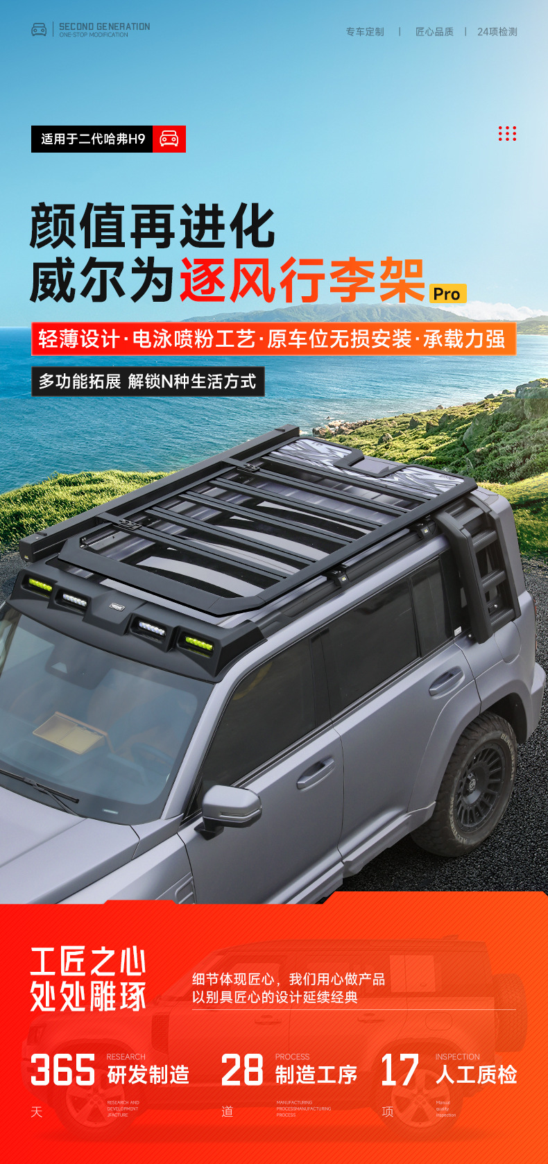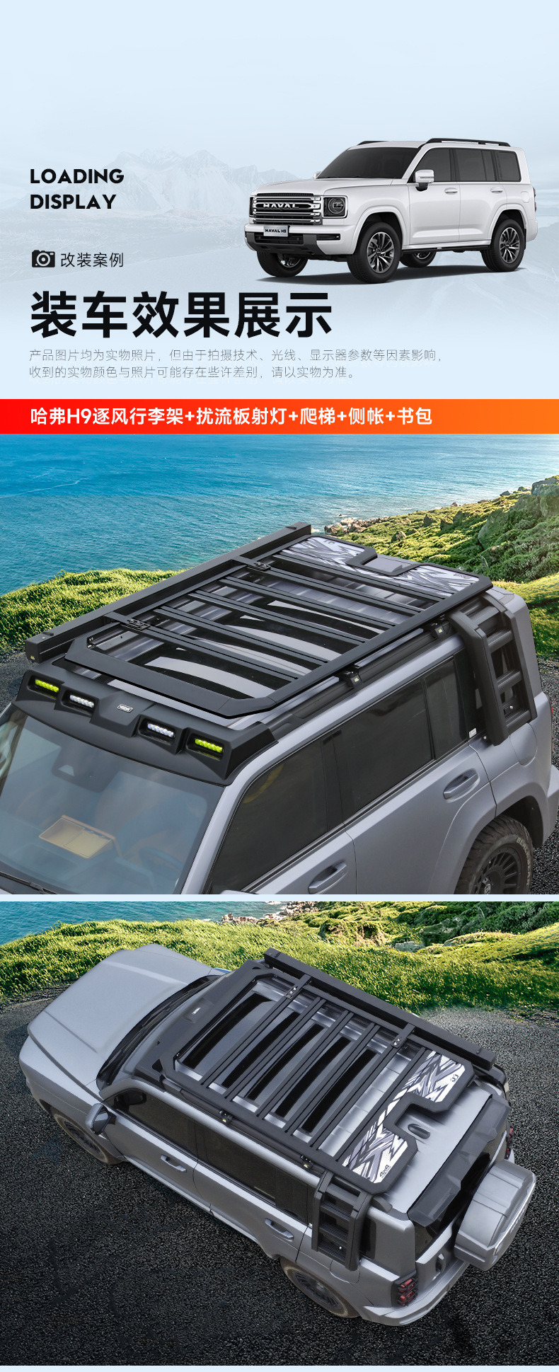 Haval H9 Wind-Chasing Luggage Rack Frame Roof Spotlight Roof Platform Side Ladder Backpack Side Tent Off-Road Modification Accessories