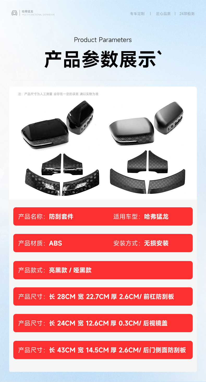 HAVAL Raptor Body Side Protectors, Rearview Mirror Covers and Car Door Anti-Collision Guard Strips Decoration Kit