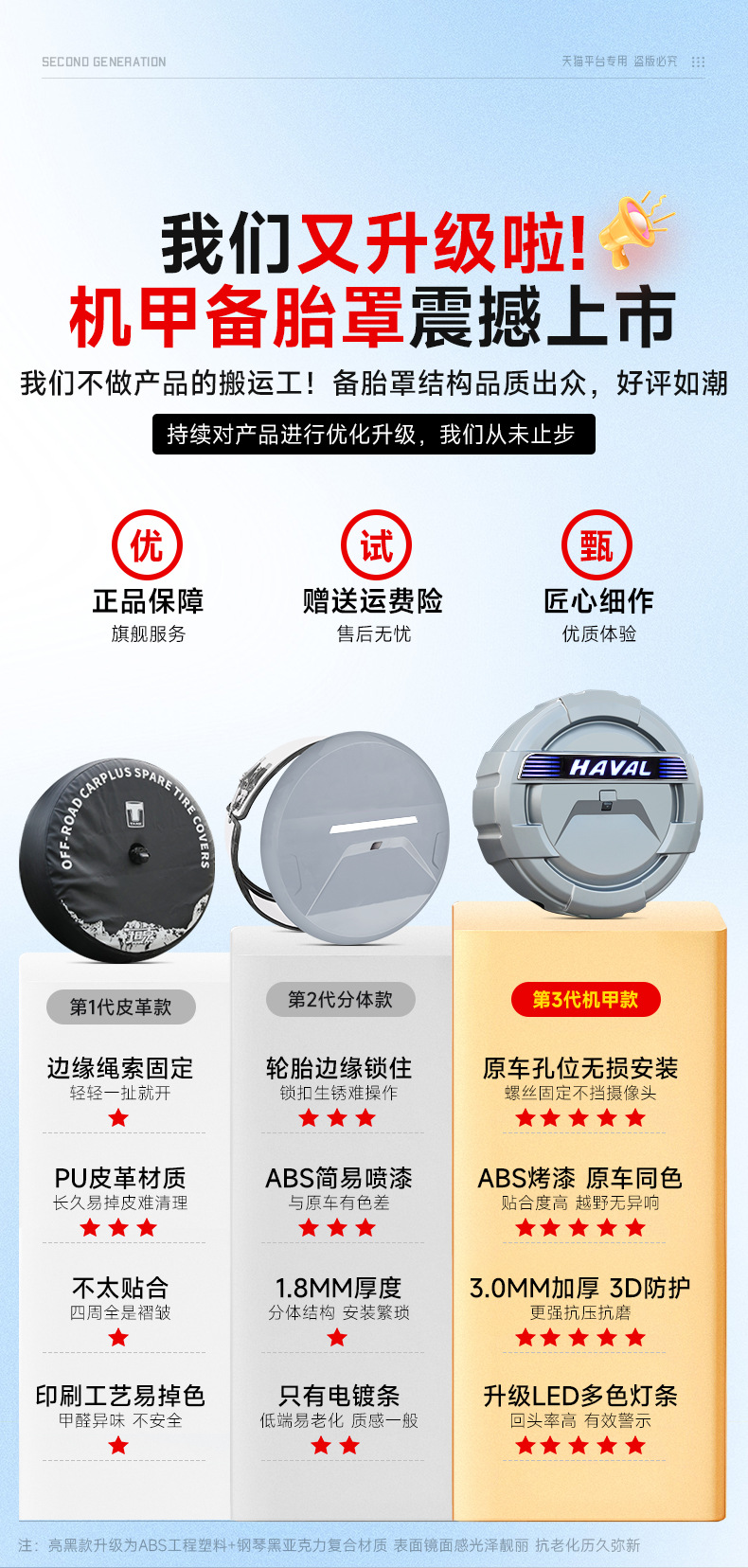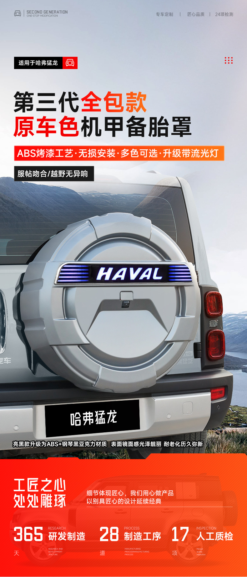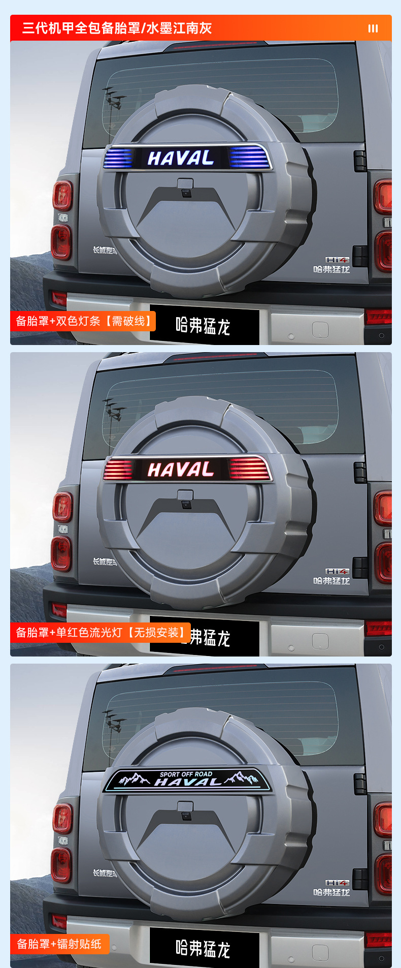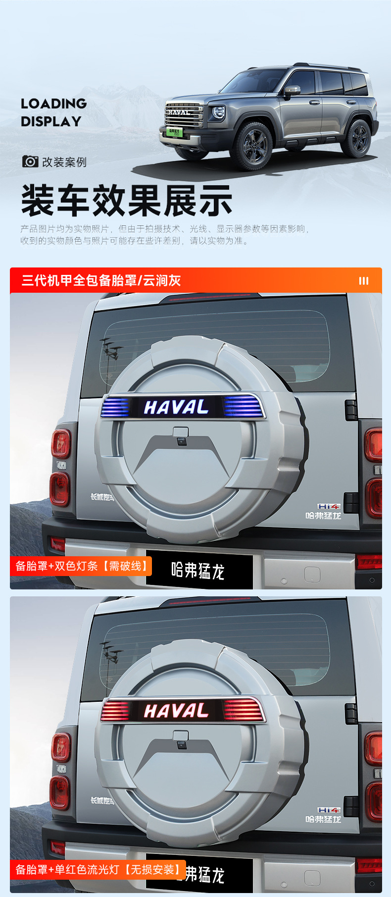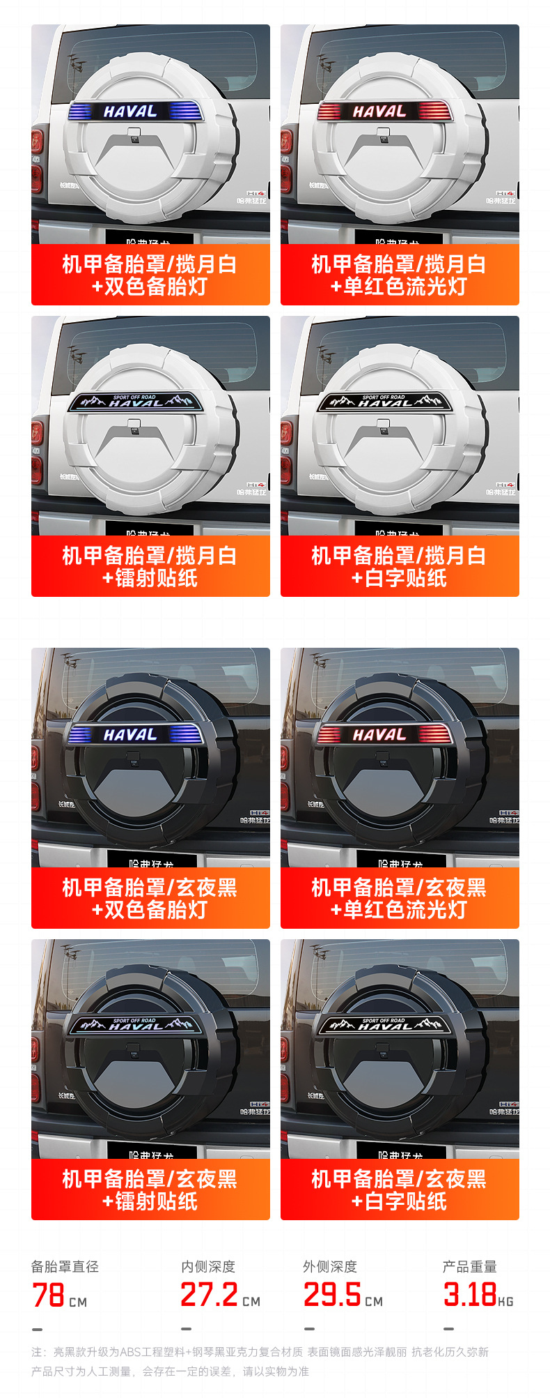 Haval Raptor Spare Tire Cover with Light, Modified Special All-Inclusive Spare Tire Shell, Exterior Tire Cover, Off-Road Vehicle Decorative Accessories