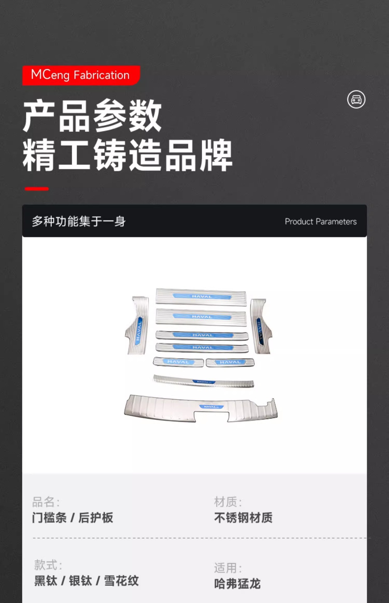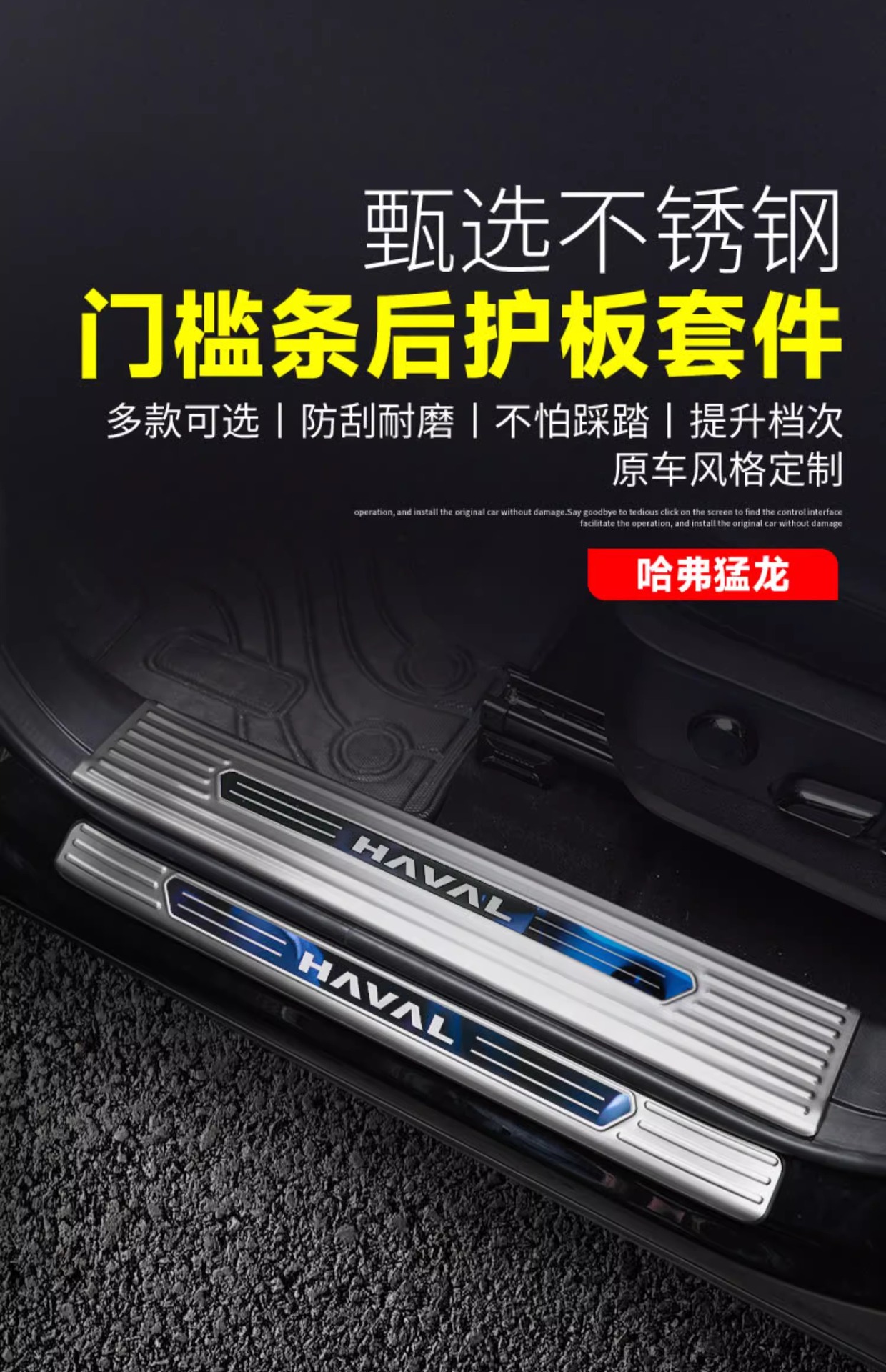 Haval Raptors Threshold Bar Welcome Pedal Modification Trunk Guard Decorative Stainless Steel Anti-stepping Protection Sticker Harvard