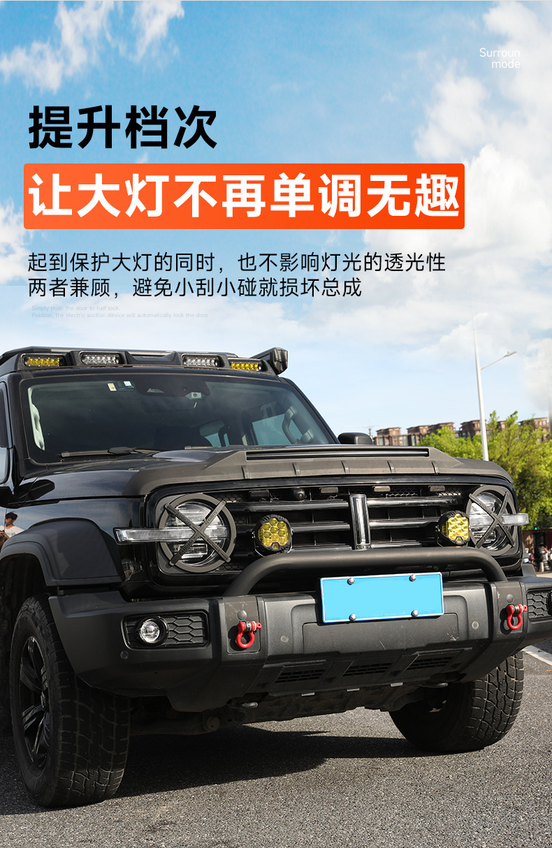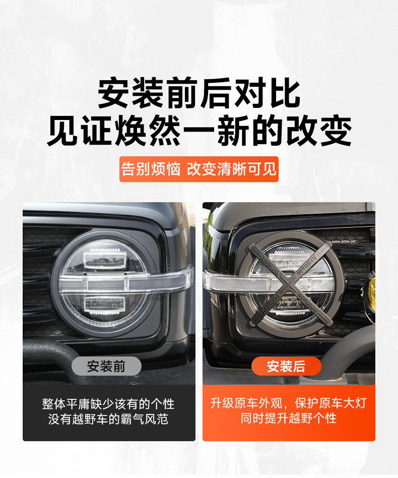 Upgrade your Tank 300 with durable headlight and taillight guard covers. Enhance your off-road look while protecting lights from debris. Easy adhesive install.