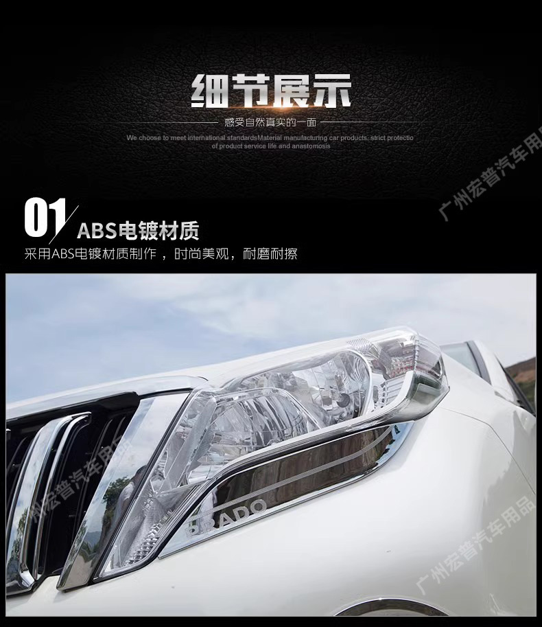 Tags: automotive trim strip, car styling garnish, chrome headlight strip, front lamp cover, headlight eyebrow trim, headlight eyelid, prado exterior accessories