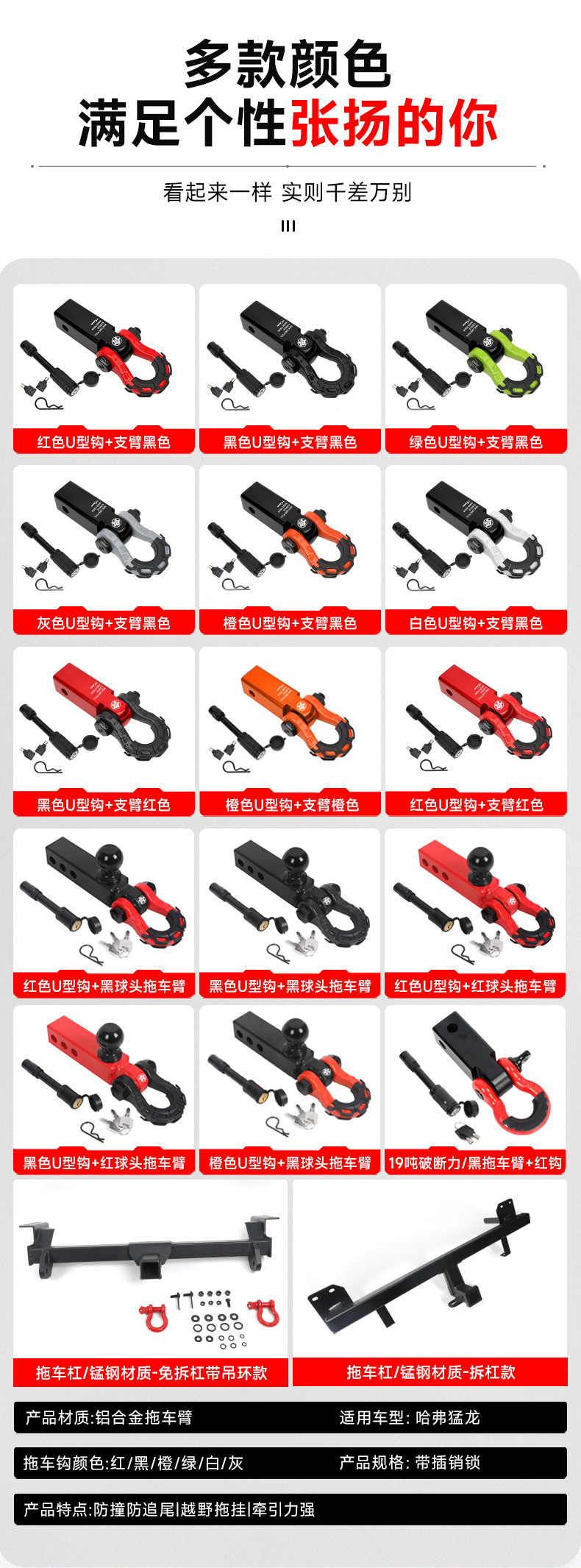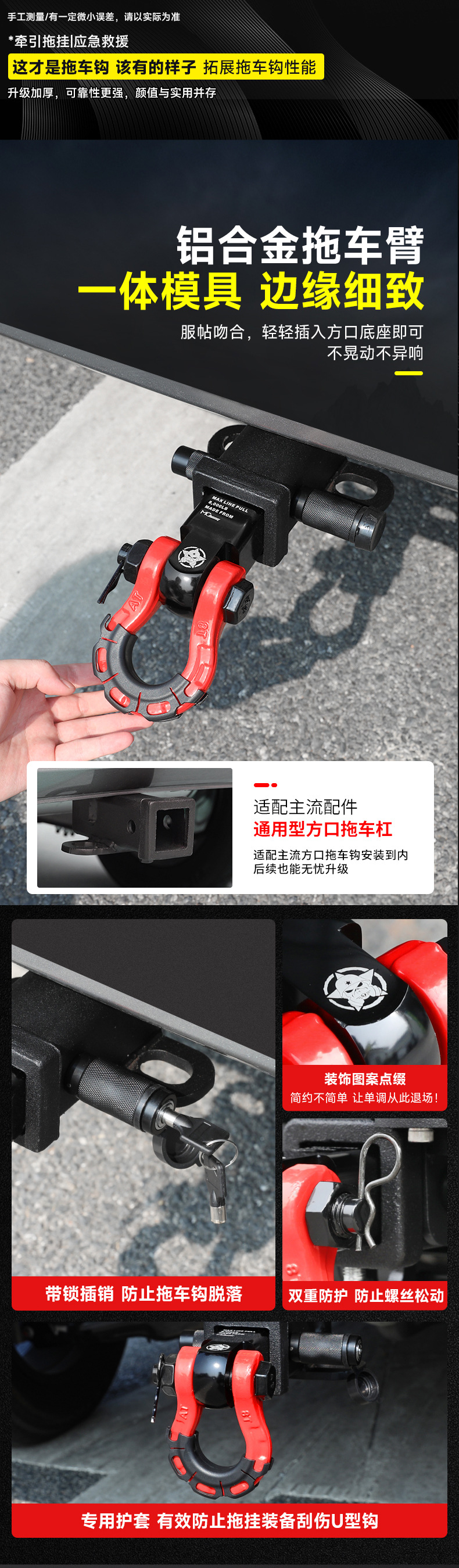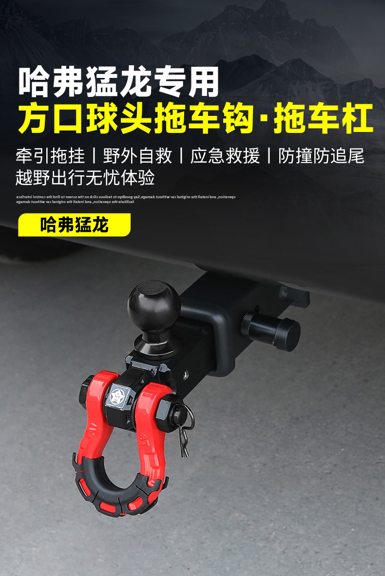 Heavy Duty 2-Inch Receiver Hitch Ball Mount U-Shaped Tow Hook Recovery Kit for Haval Raptor Off-Road Support